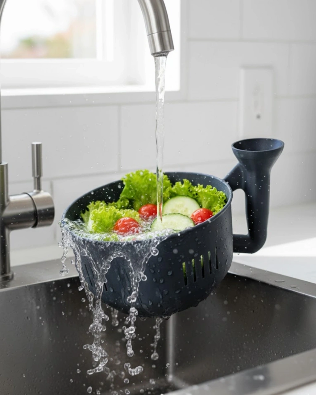 • Modern Tasarımlı Sebze Yıkama Kabı Süzgeçli Pratik Mutfak Atı