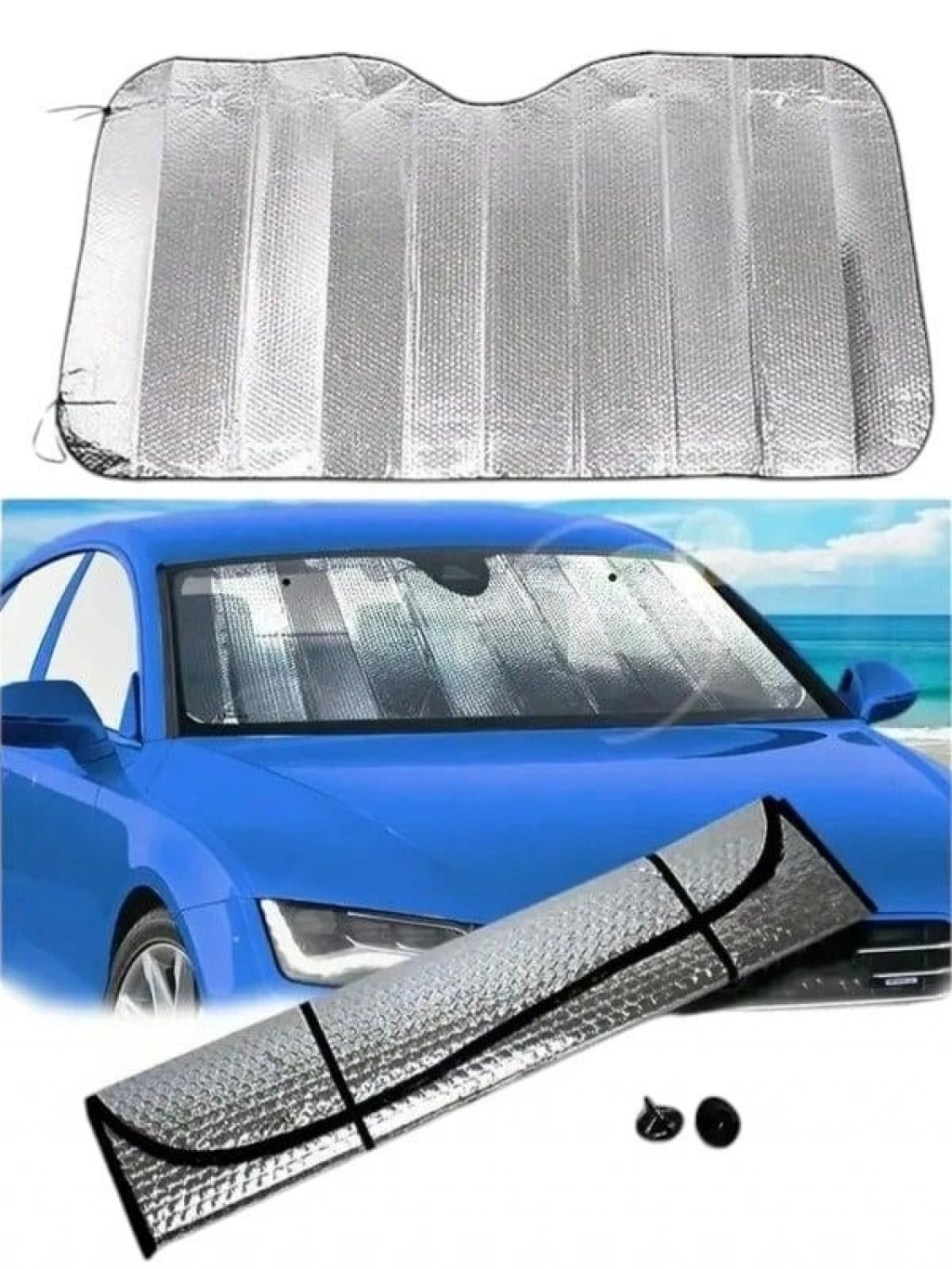 Araba Ön Cam Güneşliği güneş ışınlarını geri yansıtan tasarımıyla aracınızı daha serin tutmanıza yardımcı olacak.Yaz günlerinde aracınızı güneş alan bir alana park etmek zorunda kaldığınızda aracınızı aşırı derecede ısınmış bir şekilde bulabilirsiniz.Ön cam güneşliği metalize reflektörlü aluminyum yüzeyiyle güneş ışığını %99'a kadar bloke ederek daha konforlu bir yolculuk olanağı sunar.Aracınızı daha kısa süre içerisinde serinletebilmenize yardımcı olarak zaman kaybını ve klima kullanımına bağlı yakıt tüketimini azaltmanızı sağlar.Süngerli iç yapısı ürüne ekstra izolasyon yapabilme özelliği katarak aracınızı aşırı ısınmaya karşı korurken, aracınızın deri, plastik ve kumaş aksamlarının da zararlı ışınlara bağlı olarak hasar görmesini engeller.Katlanabilme özelliğiyle aracınızda yer işgal etmeden kolayca taşıyabileceğiniz ürün, 130 cm'lik genişliği ve 60 cm'lik yüksekliğiyle tüm standart otomobil modelleriyle uyumludur. Ürün Özellikleri:Metalize reflektörlü otomobil güneşliğidirAracınızı aşırı ısınmaya karşı korurSüngerli iç yapısıyla ekstra izolasyon sunarDeri, plastik ve kumaş aksamları zararlı ışınlardan korurTüm standart otomobil modelleriyle uyumludurKolayca takılıp sökülebilir, defalarca kullanılabilirKatlanabilir yapısıyla taşınması ve saklanması kolaydırÜrün ÖlçüleriAçık Ebat: 130 cm x 60 cm