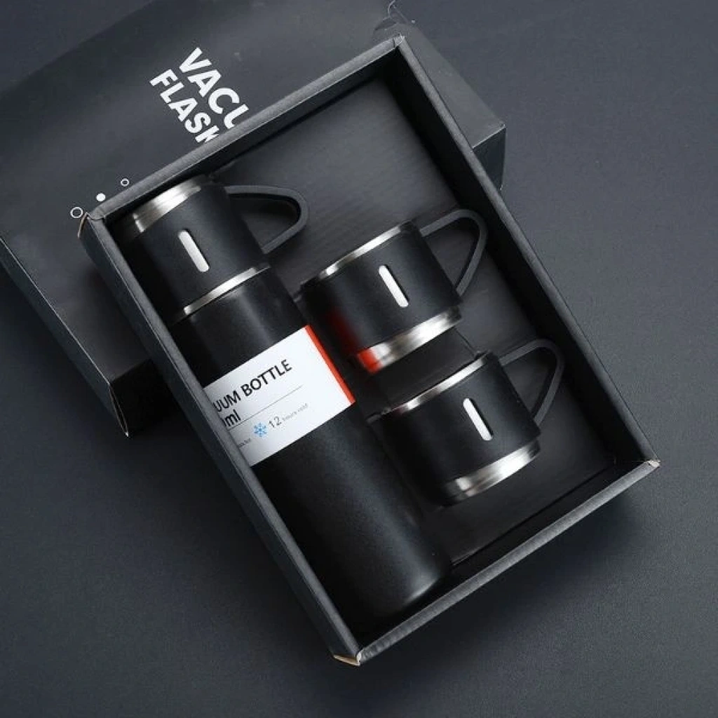 • Paslanmaz Çelik Bardaklı Termos Seti 500 ML