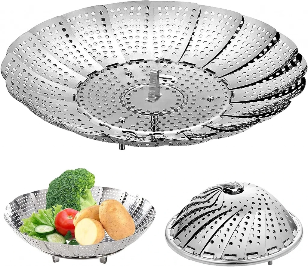 PASLANMAZ ÇELİK BUHARDA PİŞİRME SEPETİÜrün Özellikleri100% yepyeni ve yüksek kaliteYüksek kaliteli paslanmaz çelik, normal kullanım altında pas almazsınızBasınç ocakları, anlık tencere, tencere, vb. Için mükemmel olan tüm tencere boyutlarına genişler ve ayarlar.Pirinç, balık, köfte, meyve ve sebze, deniz ürünleri (Balık, yengeç, missels, istiridye) tatlılar, et ve tavuk, yumurta ve daha fazlası!Yemeğinizi buharlaştırarak, sadece tadını lezzetli hale getirmekle kalmazsınız, yemeklerinizin içerisinde besinleri %90  daha fazla saklarsınız! Bu yüzden sadece sıkıcı, sağlıksız yemeklere bağlı kalmayın. Tencere/tava ve basınçlı ocaklar için  çeşitli boyutlarda uyacak şekilde genişleyebilir, en sevdiğiniz tencereyi güvenli bir buharlı sepete dönüştürür. Renk: gümüşMalzeme: paslanmaz çelik Boyutu: Katlanmış boyutu: 14.2x3cmAçılmış boyutu: yükseklik: 5cm çapı: 21cmPaket İçeriği1 adet paslanmaz çelik buharda pişirme sepeti