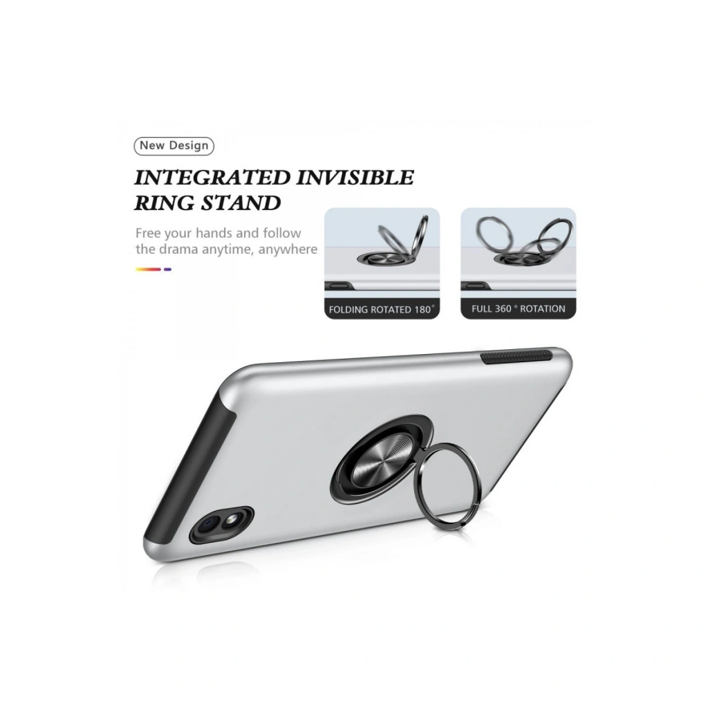 Kapak üzerinde yer alan 360° dönebilen silindir metal yüzük, hem stand işlevi görür hem de mıknatıs özelliği sayesinde araç içi manyetik telefon tutucularla tam uyum sağlar.