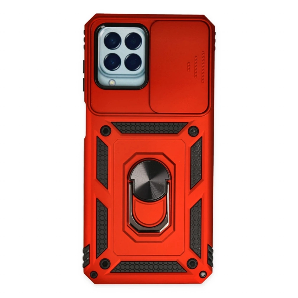 • Samsung Galaxy M33 Kılıf Pars Lens Yüzüklü Silikon - Kırmızı