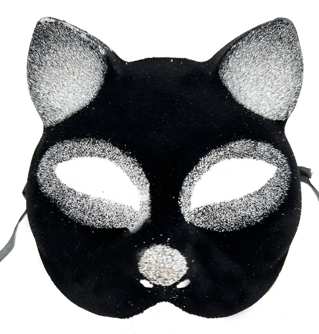 • Siyah Gümüş Simli Kedi Maskesi
