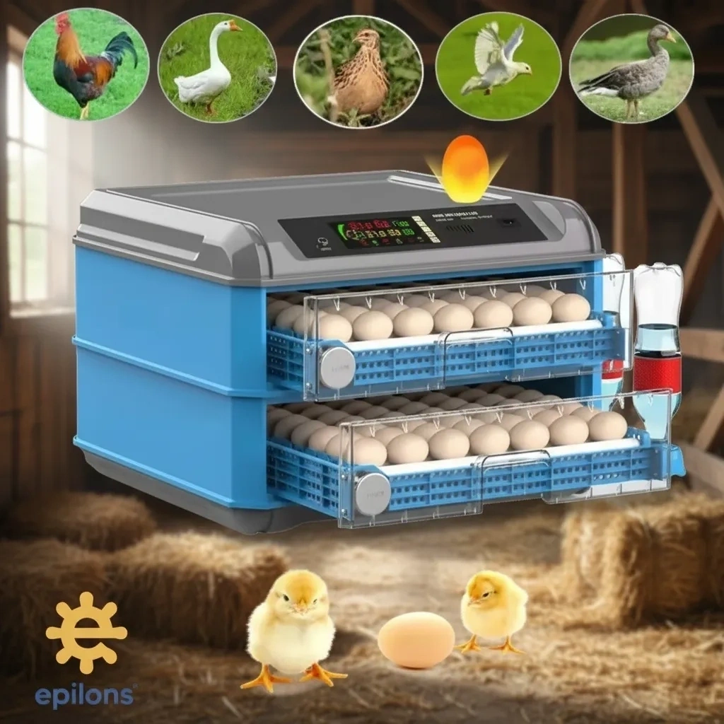 Epilons marka tam otomatik kuluçka makinesi, 128 yumurta kapasitesi ile evcil hayvan sahipleri için ideal bir seçenektir. Yüksek teknoloji ürünü olan bu kuluçka makinesi, Civciv, Kaz, Hindi ve Ördek gibi farklı türlerin yumurtalarını güvenle kuluçkaya yatırmanızı sağlar.