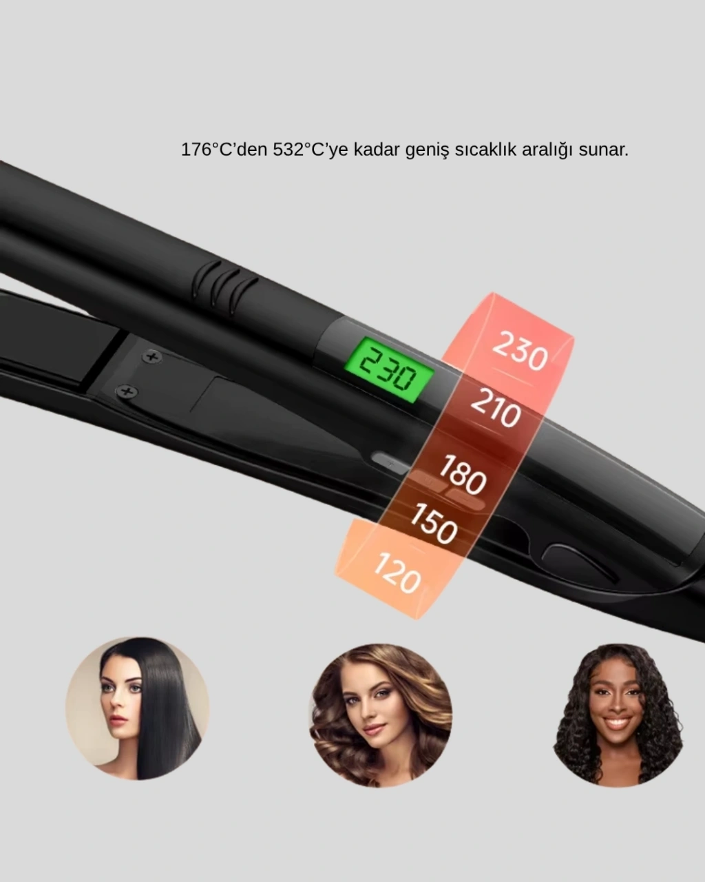 Saç sağlığınızı korurken pürüzsüz bir görünüm elde edin!Titanyum kaplamalı seramik plakalar, ısıyı eşit dağıtarak saç tellerinin zarar görmeden düzleşmesini sağlar.Bu teknoloji, elektriklenmeyi önler ve saçlara doğal parlaklık kazandırır.Nem koruma sensörü, saçın nem seviyesini algılayarak sıcaklığı otomatik olarak dengeler.Saçlarınız ne çok kuru ne de fazla sıcaklığa maruz kalır — ideal ısıda şekillenir.176°C – 532°C sıcaklık aralığı, farklı saç tiplerine göre optimum düzleştirme imkânı sunar.İnce telli, kalın ya da dalgalı fark etmez; her saç tipi için özel ısı ayarıyla mükemmel sonuçlar alabilirsiniz.Ergonomik tasarımı, uzun kullanımda bile elinizi yormaz.Dijital ekran, sıcaklık seviyesini kolayca kontrol etmenizi sağlar.360° dönebilen kablo ve 2.5 metrelik uzunluk, hareket özgürlüğü kazandırır.Kablo karışmadan profesyonel saç şekillendirme deneyimi yaşayın.Şık tasarımı, taşınabilir yapısı ve güvenlik kilidiyle seyahatlerde bile yanınızdan ayırmak istemeyeceğiniz bir üründür.Saçlarınıza salon kalitesinde parlaklık ve yumuşaklık kazandırmak artık çok kolay!