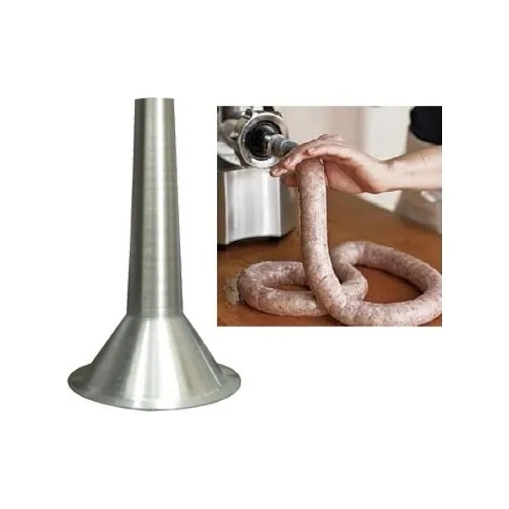 Tuğra Paslanmaz Alüminyum Sucuk Hunisi No: 12 ile evinizde kolayca ve hijyenik bir şekilde sucuk hazırlayın Paslanmaz alüminyumdan üretilen bu huni, kıyma ve baharatlarınızı sucuk kılıfına kolayca doldurmanıza yardımcı olur.