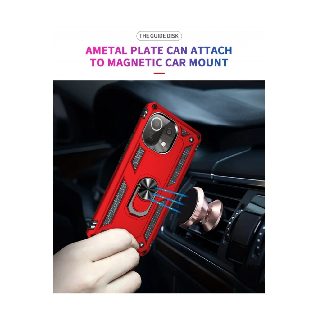 • Xiaomi Mi 11 Lite Kılıf Sofya Yüzüklü Silikon Kapak - Kırmızı