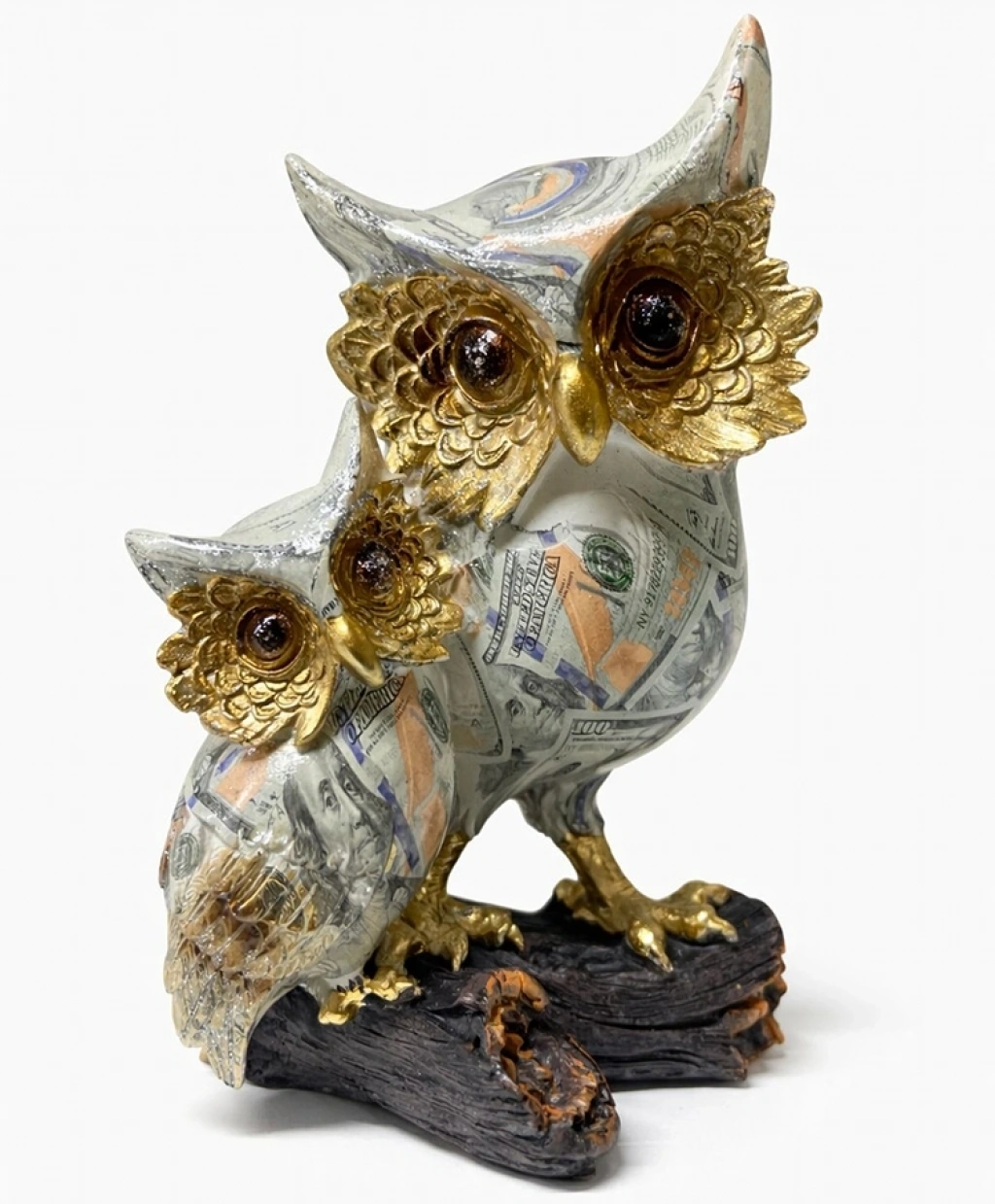 DOLAR BASKILI ÖZEL TASARIM İKİLİ POLYESTER BAYKUŞ Ürün ÖzellikleriDolar baskılı özel tasarım ikili polyester baykuş figürü, dekorasyonda hem estetik hem de anlam arayanlar için güçlü bir alternatif sunar. 18x12 cm ölçülerindeki ideal boyutu sayesinde masa üstü, raf, vitrin, kitaplık, konsol veya ofis masası gibi birçok alanda rahatlıkla kullanılabilir. İkili baykuş figürü; birlik, uyum ve bereketi simgelerken, üzerindeki dolar temalı baskı zenginlik, bolluk ve finansal başarıyı temsil eder. Bu özelliğiyle özellikle iş yeri, ofis, çalışma odası ve mağaza dekorasyonlarında tercih edilen dikkat çekici bir dekoratif objedir. Dayanıklı polyester malzemeden üretilmiş olup uzun ömürlü kullanım sunar ve darbelere karşı dirençlidir. Detaylı tüy dokuları, yüz ifadeleri ve özenle uygulanmış renk geçişleri sayesinde dekorasyona kaliteli ve prestijli bir görünüm kazandırır. Solmaya karşı dirençli yapısı ile uzun süre ilk günkü canlılığını korur. Hem kendiniz için anlamlı bir dekor ürünü olarak hem de sevdiklerinize şık ve sembolik bir hediye alternatifi olarak öne çıkar.Paket İçeriği1 adet Dolar Baskılı Özel Tasarım İkili Polyester Baykuş Figürü (18x12 cm)
