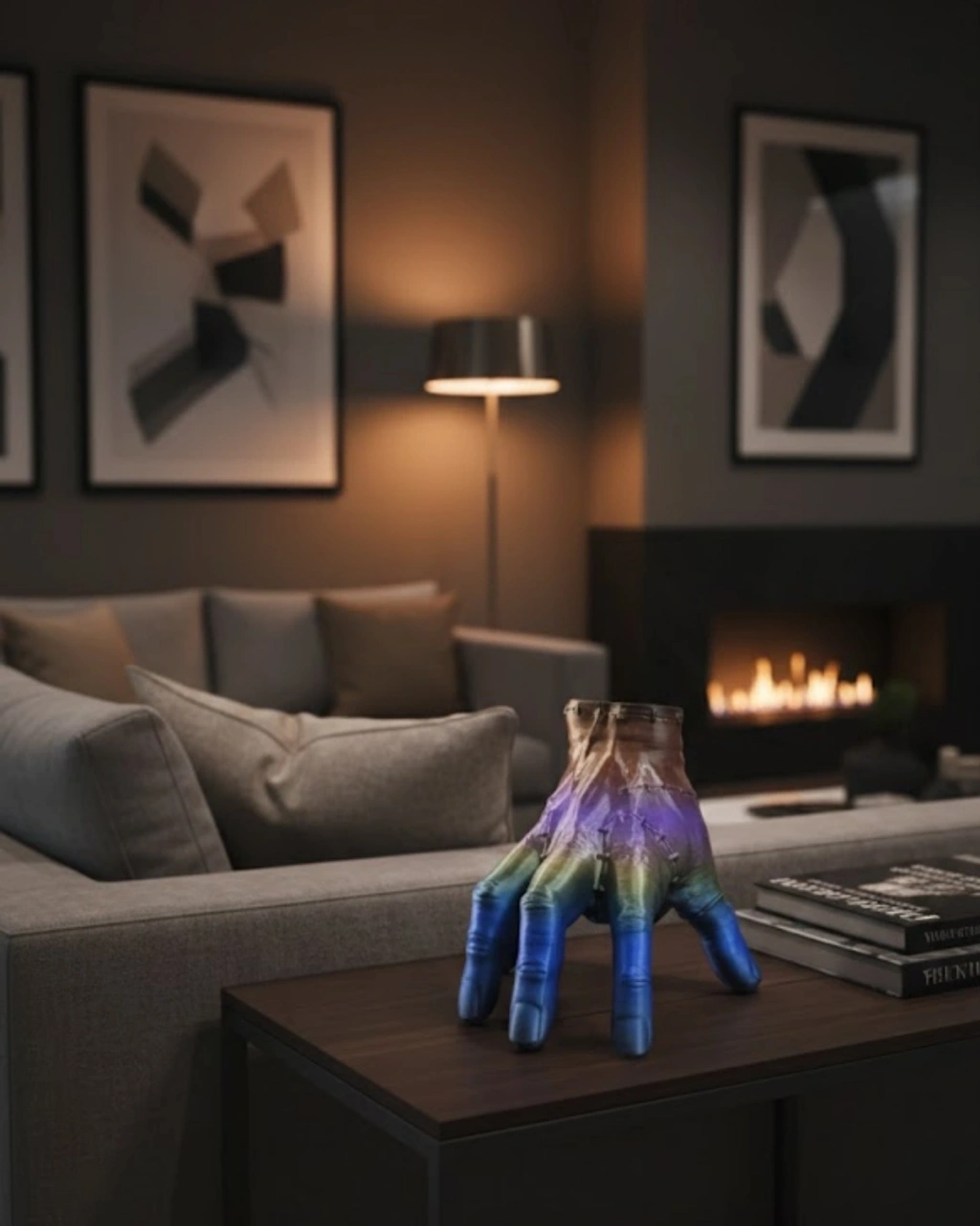 3D Rengarenk El Dekoratif Heykel 27x22 cm, dekorasyonda sıradanlıktan uzak, cesur ve dikkat çekici bir atmosfer yaratmak isteyenler için tasarlanmış büyük boy ve iddialı bir tasarım ürünüdür. 27x22 cm ölçüsü sayesinde bulunduğu ortamda güçlü bir “statement piece” olarak öne çıkar ve mekânın ana odak noktası haline gelir.Özel renk geçişli tasarımı sayesinde tek bir tona bağlı kalmaz; mavi, mor, yeşil ve koyu tonların es birleşimi ürüne sanatsal bir derinlik kazandırır. Her açıdan farklı bir renk yansıması sunarak bulunduğu alana dinamik ve modern bir karakter kazandırır.Heykelsi formu ve 3D yüzey detayları, ürünü sıradan dekoratif objelerden ayırır. Dikiş efektleri ve kıvrım detayları tasarıma özgün bir hava katar.Geniş konsollar, TV üniteleri, şömine üstü alanlar ve büyük raf sistemleri için ideal ölçüdedir. Tek başına bile bulunduğu alanın enerjisini tamamen değiştirebilir.Modern, alternatif ve sanatsal dekorasyon sevenler için güçlü ve özgün bir tercihtir.