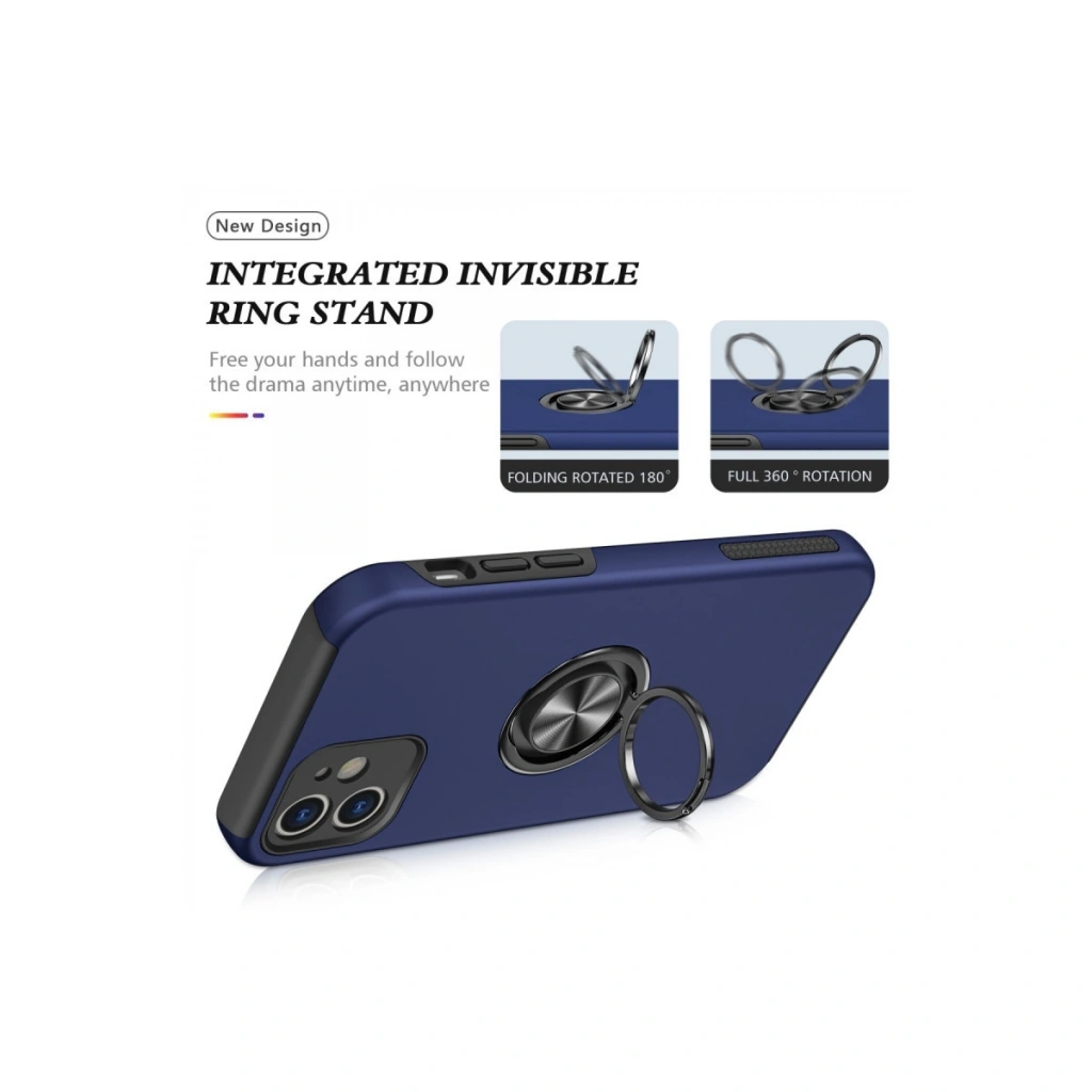 Apple İphone 12 Kılıf Elit Yüzüklü Kapak - Lacivert