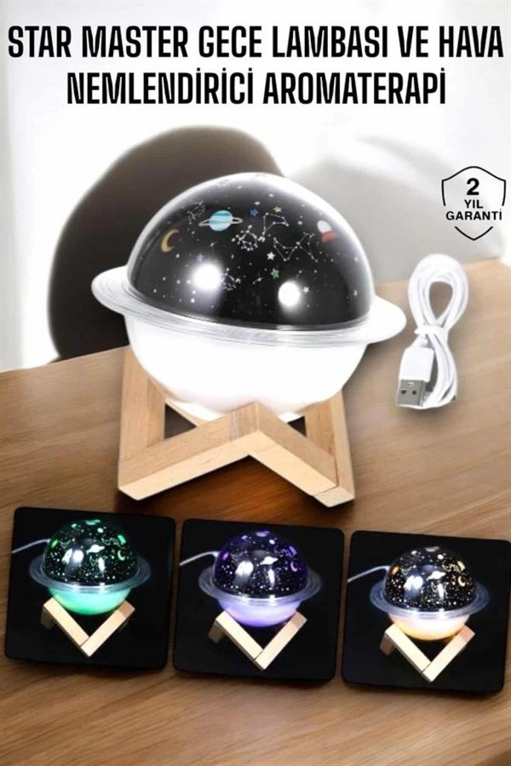 USB Projeksiyon Gece Lambası ve Hava Nemlendirici, kuru havanın zararlı etkilerini ortadan kaldırmak ve yaşam alanınızda sağlıklı bir atmosfer yaratmak için tasarlanmıştır. Bu cihaz, havayı nemlendirerek cilt kuruluğu, boğaz tahrişi gibi problemleri önler, nefes almayı kolaylaştırır ve cildinize ihtiyacı olan nemi sağlar. Şık ve zarif tasarımı, odanızın dekorasyonunu tamamlayan modern bir dokunuş sunar.Projeksiyon özelliği, cihazın sadece bir hava nemlendirici değil, aynı zamanda etkileyici bir gece lambası olarak da kullanılmasını sağlar. Odanıza huzurlu bir ambiyans sağlayan bu projeksiyon, rahatlamanıza ve stresinizi atmanıza yardımcı olur. Su haznesine ekleyebileceğiniz esans veya parfümlerle, yaşam alanınızı hoş kokularla doldurabilir ve aromaterapi etkisinden faydalanabilirsiniz. USB bağlantı özelliği, cihazın kolaylıkla taşınabilmesini ve farklı güç kaynaklarından enerji almasını sağlar.Bu nemlendirici cihaz, hem sağlığınızı destekler hem de es ihtiyaçlarınızı karşılar. Kompakt boyutları, kolay kullanımı ve fonksiyonel özellikleriyle gün boyu kaliteli hava solumanızı sağlar. Gece daha iyi bir uyku için kuru havanın zararlı etkilerini ortadan kaldırır, cildinizi korur ve yaşam alanınızı güzelleştirir.