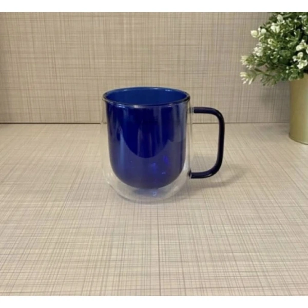 Çift Cidarlı Cam Kupa Lacivert Renk