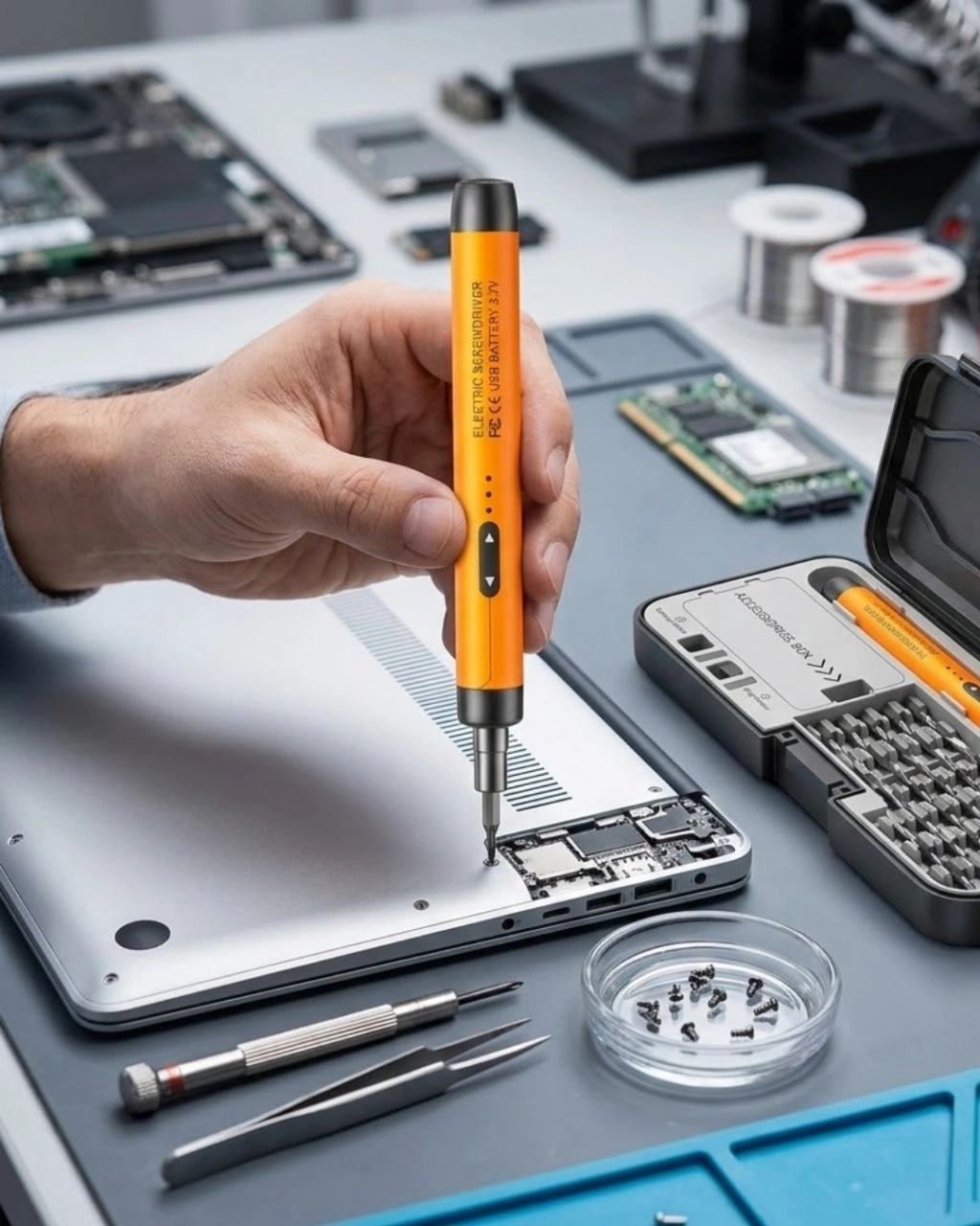 Elektronik tamir işlemlerinde hassasiyet ve kontrol en önemli faktörlerdir. Bu şarjlı elektrikli tornavida seti, tam da bu ihtiyaçlar için geliştirilmiştir. 3.7V Li pil sistemi ve 600mAh kapasitesi ile güçlü bir performans sunarken, Type-C şarj arayüzü sayesinde hızlı şarj imkanı sağlar. Kablosuz tasarımı, çalışma alanında özgürlük sunar.1100 rpm dönüş hızı, küçük ve hassas vidalarda maksimum verim sağlar. 3.0–3.5 kgf.cm tork gücü, elektronik cihazlara zarar vermeden vidalama işlemi yapmanıza yardımcı olur. İleri ve geri dönüş fonksiyonu sayesinde vidalar pratik şekilde sökülüp takılabilir.Alüminyum alaşımlı ergonomik sap tasarımı, elde kayma yapmaz ve uzun süreli kullanımlarda konfor sağlar. 38 adet CRV tornavida ucu, farklı cihazlara uyumlu geniş seçenek sunar. Set içerisindeki 6 adet sökme penası, özellikle telefon ekranı ve kapak sökme işlemlerinde büyük avantaj sağlar.Manyetik uç sistemi sayesinde vidalar sabit tutulur. Mıknatıslanma ve manyetiklik giderme parçaları ise vida kontrolünü optimize eder. Telefon, laptop, kamera, oyun konsolu ve diğer hassas dijital cihazlar için ideal bir tamir setidir.