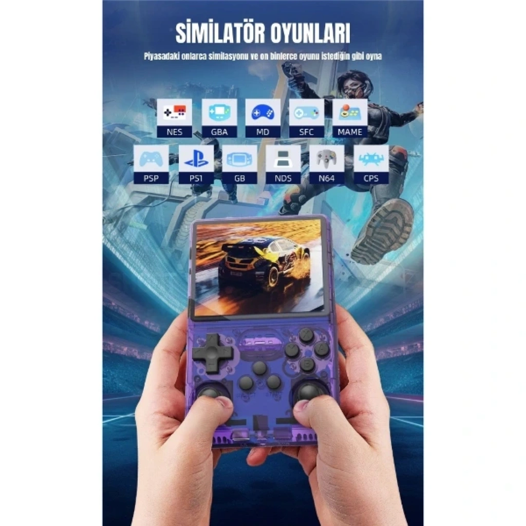 RETRO OYUN EL KONSOLU R40S PROÜrün ÖzellikleriRetro Oyun El Konsolu R40S Pro, nostaljik oyunları modern teknolojiyle buluşturan yüksek performanslı bir oyun deneyimi sunar. RK3326 işlemci ile donatılan bu taşınabilir konsol, akıcı ve kesintisiz oyun performansı sağlar. Arkos işletim sistemi sayesinde kullanıcı dostu, özelleştirilebilir ve hızlı bir arayüzle kolay kullanım sunar.Cihazda 256 GB dahili hafıza bulunur ve ek SD kart yuvası ile depolama kapasitesi genişletilebilir. 30.000’den fazla klasik oyun yüklü olarak gelir ve 20’den fazla emülatör (NES, SNES, PSP, PS1, GBA, SEGA, Arcade, MAME vb.) destekler. Ayrıca Portmaster portları ile ekstra oyun yükleme imkânı sunar.3.5 inç IPS OCA HD MIPI ekran (640×480 çözünürlük) canlı, net ve renkli görüntülerle oyun keyfini artırır. 3800 mAh lityum pil, tek şarjla 8-10 saate kadar kesintisiz oyun oynamanıza olanak tanır. OTG desteği sayesinde WiFi adaptörü, klavye, mouse veya gamepad bağlanabilir.Kompakt ve ergonomik tasarımı sayesinde her yere kolayca taşınabilir. İnternet bağlantısına ihtiyaç duymadan offline oyun deneyimi sunar. Ürün, 2 kişilik oyun desteği için harici kontrolcü bağlantısını da destekler. (WiFi adaptörü kutuya dahil değildir.)Paket İçeriği1 adet Retro Oyun Konsolu R40S Pro1 adet USB şarj kablosu 1 adet kullanım kılavuzu.