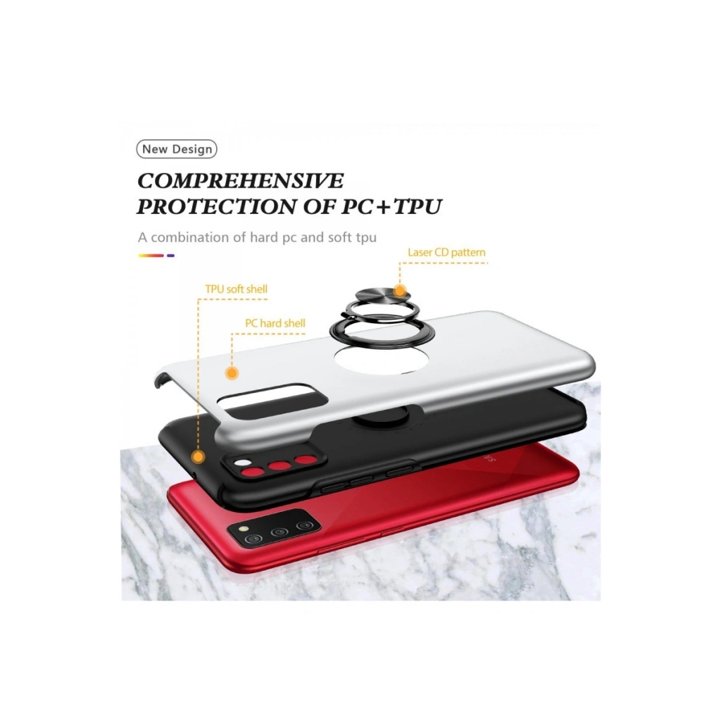 • Samsung Galaxy A02s Kılıf Elit Yüzüklü Kapak - Gümüş