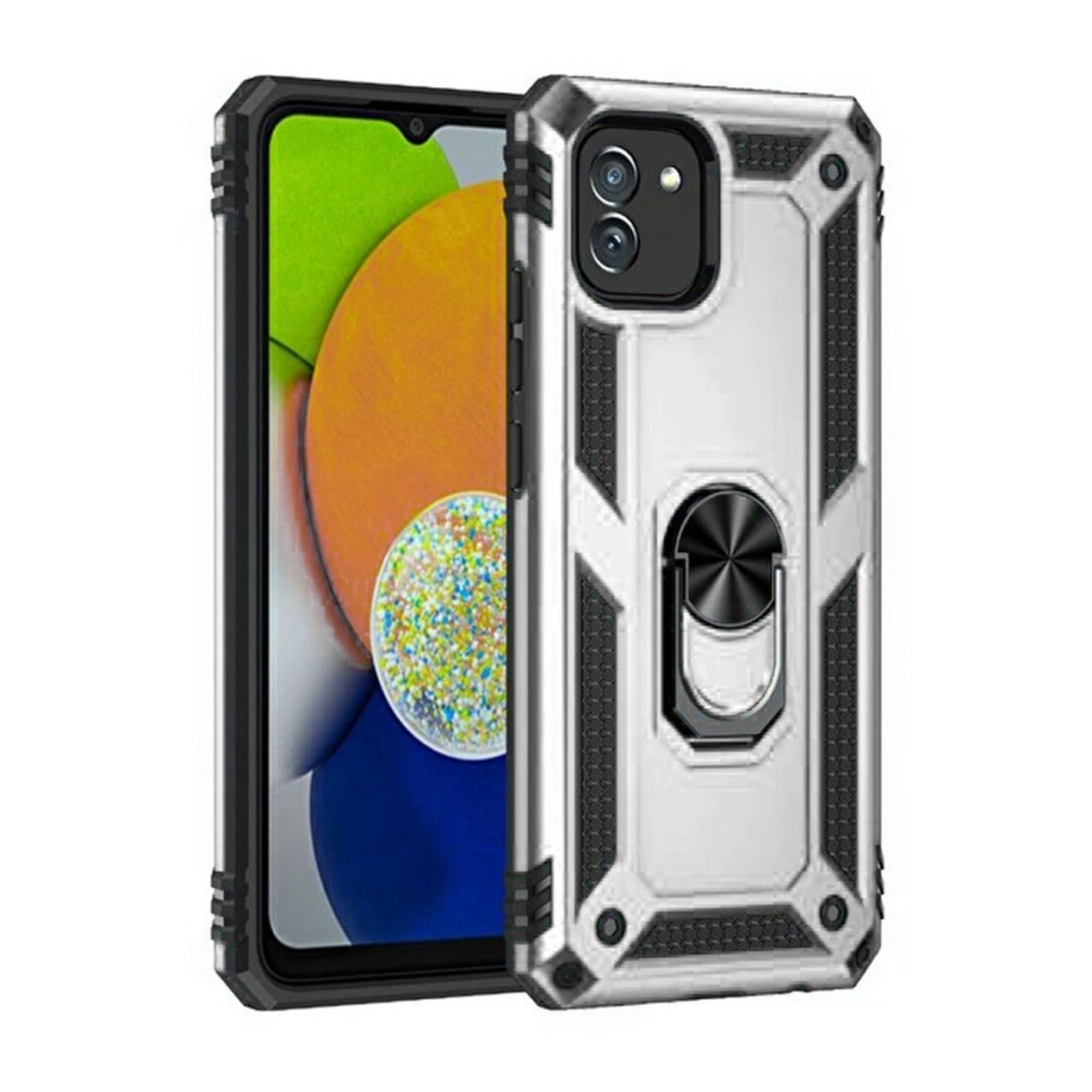 • Samsung Galaxy A03 Kılıf Sofya Yüzüklü Silikon Kapak - Gümüş