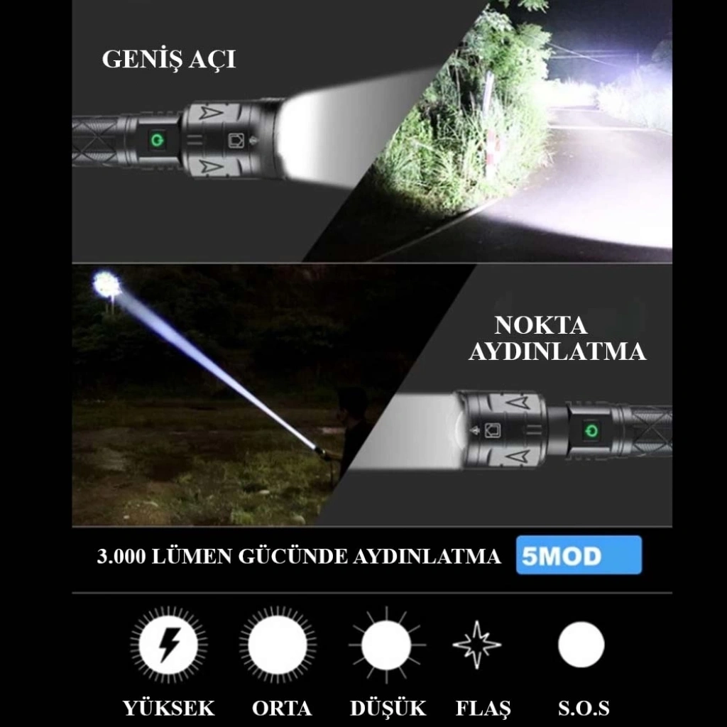 Kullanım Şekli          :5 Modda Aydınlatma Yüksek ,Orta,Düşük 2 modda sellektör