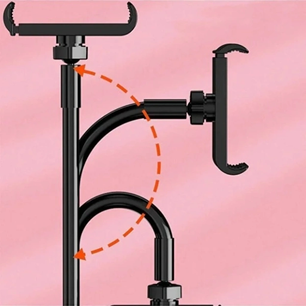 360 DERECE OYNAR MASAÜSTÜ AKROBAT TELEFON TUTUCUÜrün Özellikleri360 derece oynar masaüstü akrobat telefon tutucu, esnek ve ayarlanabilir yapısı sayesinde telefonunuzu dilediğiniz açıya kolayca sabitlemenize olanak tanır. Akrobat kol tasarımı, kıvrılabilir ve bükülebilir formu ile hem yatay hem dikey kullanımda maksimum konfor sağlar. Masa, sehpa, çalışma masası veya yatak kenarına güçlü kelepçeli yapısı sayesinde sabitlenir ve kullanım sırasında kayma ya da sallanma yapmaz. Dayanıklı metal gövde ve sağlam plastik bağlantı noktaları uzun süreli kullanım için tasarlanmıştır. Telefon tutucu kısmı yaylı mekanizmaya sahiptir ve farklı telefon boyutlarıyla uyumlu olacak şekilde güvenli bir kavrama sunar. Video izleme, canlı yayın, online toplantılar, ders takibi, sosyal medya kullanımı ve navigasyon gibi pek çok kullanım senaryosunda eller serbest kullanım imkânı sağlar. Minimal ve şık tasarımı sayesinde masa üzerinde yer kaplamaz ve çalışma alanınızı düzenli tutmanıza yardımcı olur.Paket İçeriği1 adet 360 derece oynar masaüstü akrobat telefon tutucu