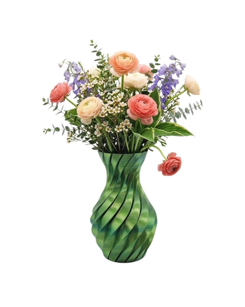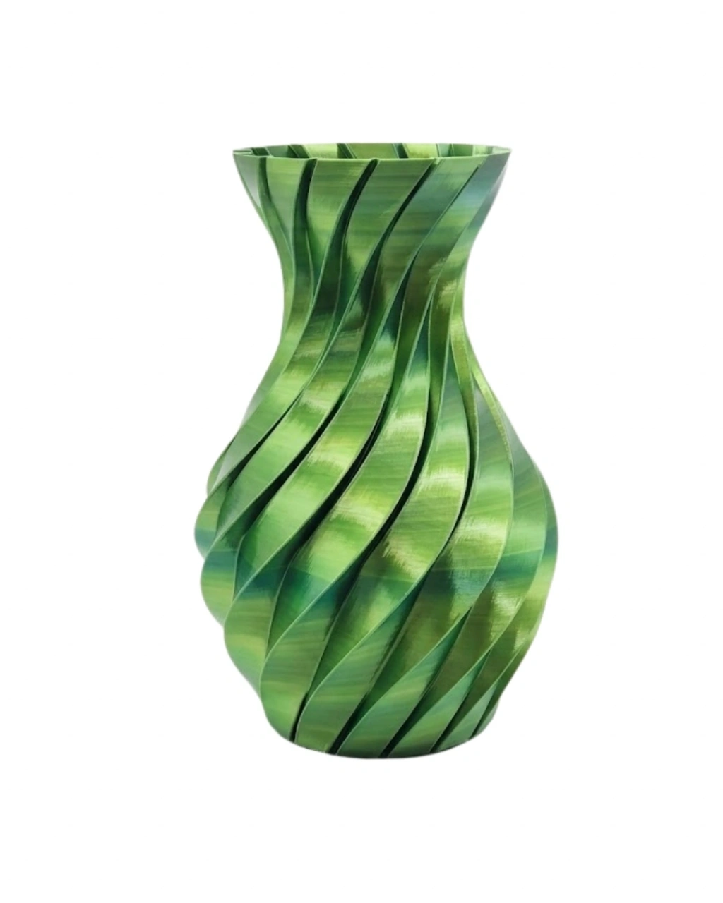 Yaşam alanlarınıza modern bir dokunuş katmak istiyorsanız, yeşil spiral 3D vazo tam aradığınız parça. Özgün tasarımı ve dikkat çekici spiral formu sayesinde bulunduğu ortamda fark yaratır. Canlı yeşil rengi doğadan ilham alarak mekâna enerji ve ferahlık katar.Es görünümünün yanı sıra kullanışlı yapısı ile de öne çıkar. Hafif ve sağlam yapısı sayesinde farklı alanlarda rahatlıkla kullanılabilir. Salon sehpası, TV ünitesi, raf veya masa üzerinde dekoratif obje olarak konumlandırılabilir.Modern, minimal ve çağdaş dekorasyon tarzlarıyla uyum sağlayan bu vazo, hem günlük kullanım hem de özel dekorasyon düzenlemeleri için idealdir. Şık ve zarif tasarımı ile evinize değer katar.