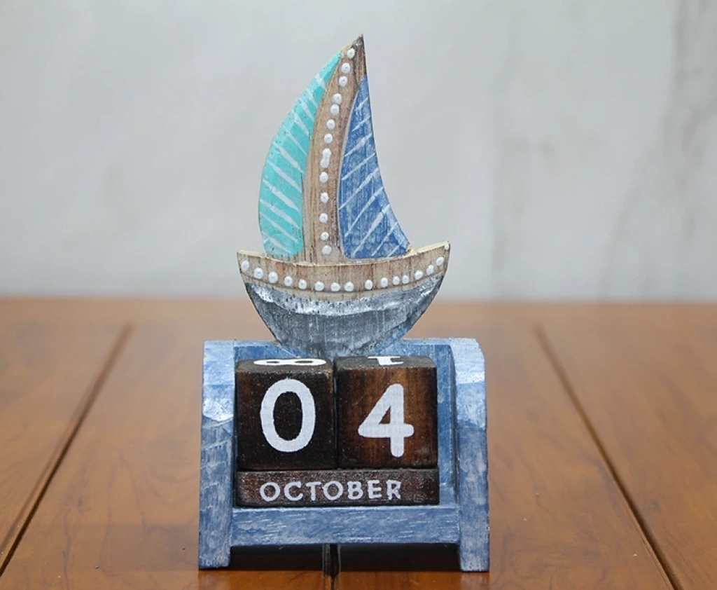 AHŞAP YELKEN TAKVİMÜrün ÖzellikleriDoğal ahşaptan el işçiliğiyle üretilen yelken figürlü takvim, 13x7 cm boyutundadır. Gün, ay ve tarih blokları sayesinde her yıl tekrar kullanılabilir. Şık ve dekoratif tasarımıyla masa üstü kullanım için idealdir. Yelken figürü ile deniz temalı dekorasyonlara uyum sağlar. Dayanıklı ve estetik yapısıyla ev veya ofis için mükemmel bir masa aksesuarıdır.Paket İçeriği1 adet ahşap yelken takvim.