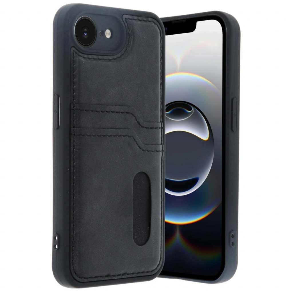 Apple İphone 16e Kılıf Sara Kartvizitli Deri Kılıf - Siyah