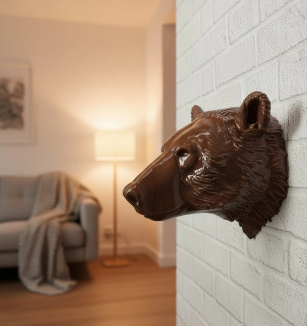 • Ev ve Ofis İçin Dekoratif Ayı Başı Heykel Hediyelik Duvar Aksesuarı