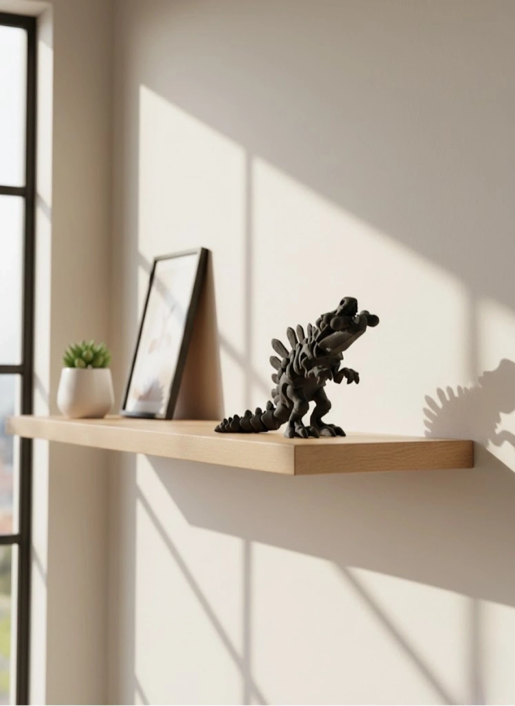 Hareketli dinazor figürü, detaylı tasarımı ve esnek yapısıyla hem dekoratif hem de eğlenceli bir üründür. Segmentli (eklemli) gövde yapısı sayesinde dinazor figürü farklı pozisyonlara getirilebilir; bu da ürünü klasik sabit figürlerden ayırır.Modern ve dikkat çekici siyah rengi, masa üstü, raf, kitaplık ve koleksiyon köşelerinde güçlü bir duruş sergiler. Özellikle dinazor severler, koleksiyon meraklıları ve çocuklar için ideal bir üründür. Hafif ve dayanıklı malzemeden üretilmiştir, uzun süreli kullanım için uygundur.Ev dekorasyonunda farklı ve eğlenceli bir dokunuş arayanlar için harika bir seçim olmasının yanı sıra, doğum günü ve özel günlerde hediye alternatifi olarak da tercih edilebilir. Ofis masasında, çalışma alanlarında veya çocuk odalarında rahatlıkla kullanılabilir.