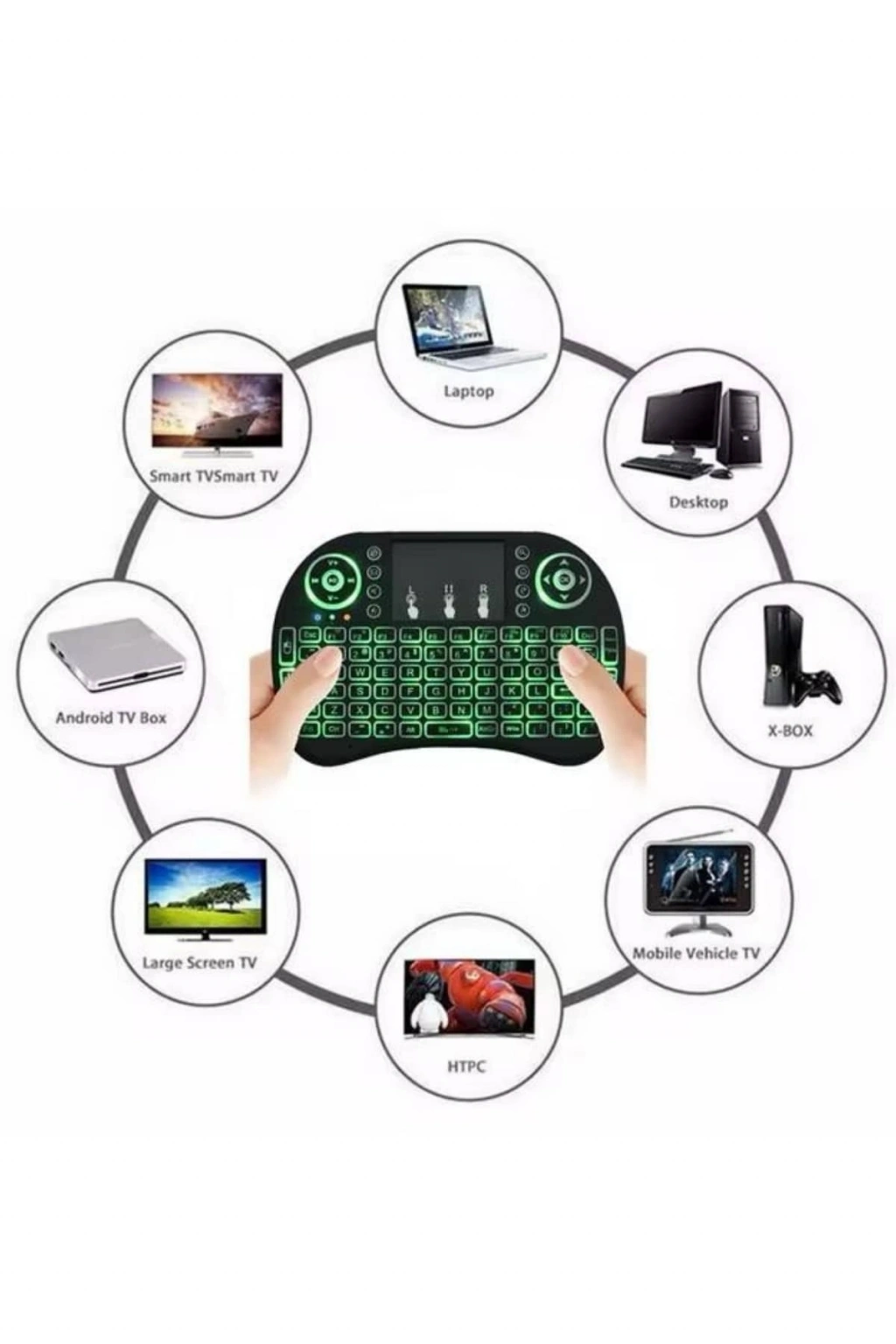 Işıklı Kablosuz Mini Klavye Ve Dokunmatik Mouse Seti Türkçe Kablosuz
