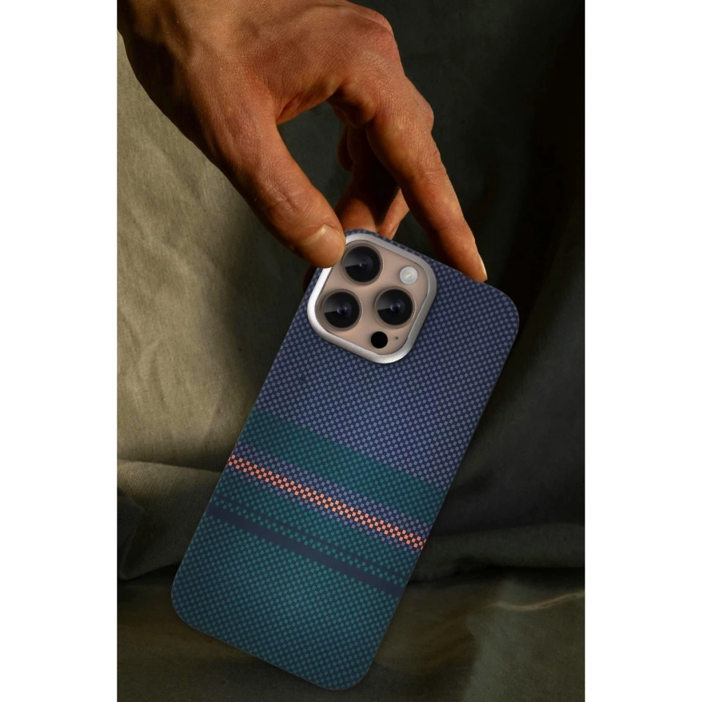 Sağlam, lüks ve hafif bir kılıftır sert plastik ve metal kamera çerçevesiyle tam koruma sağlar. Şık karbon fiber tasarımı modern bir görünüm sağlarken yerleşik MagSafe uyumluluğu da aksesuarların kolay şarj edilmesini ve bağlanmasını sağlar.