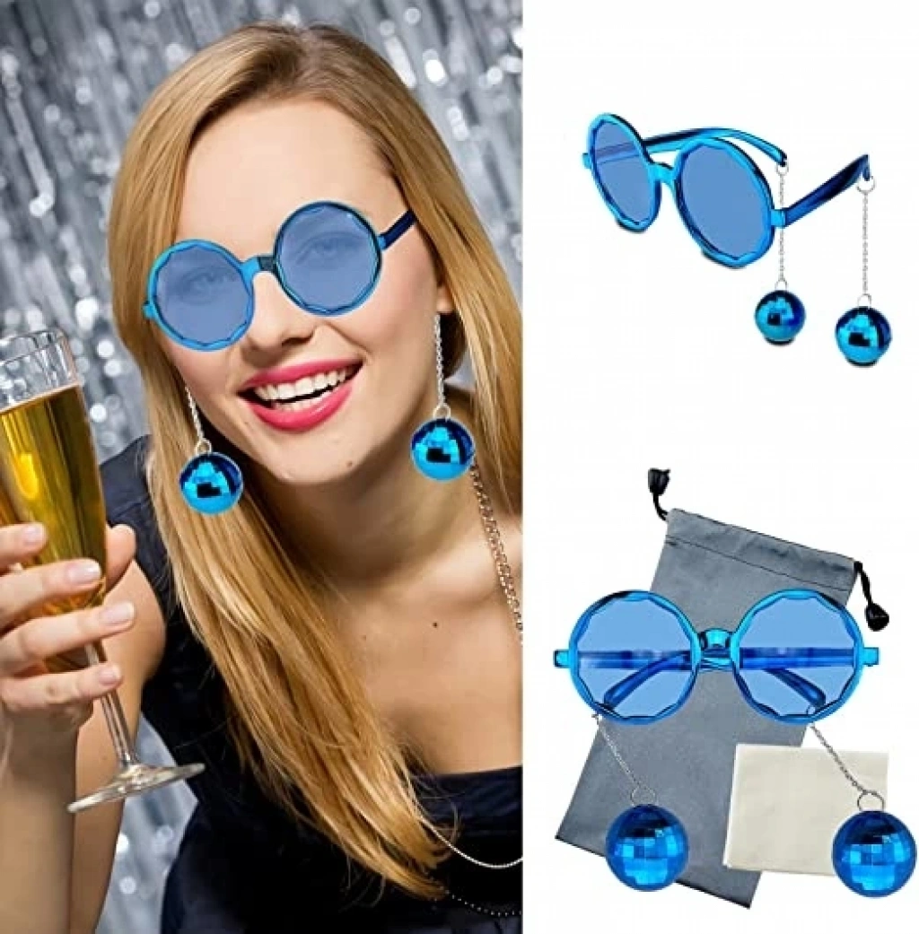 • Mavi Renk Disko Toplu Küpeli Parlak Yılbaşı Parti Gözlüğü