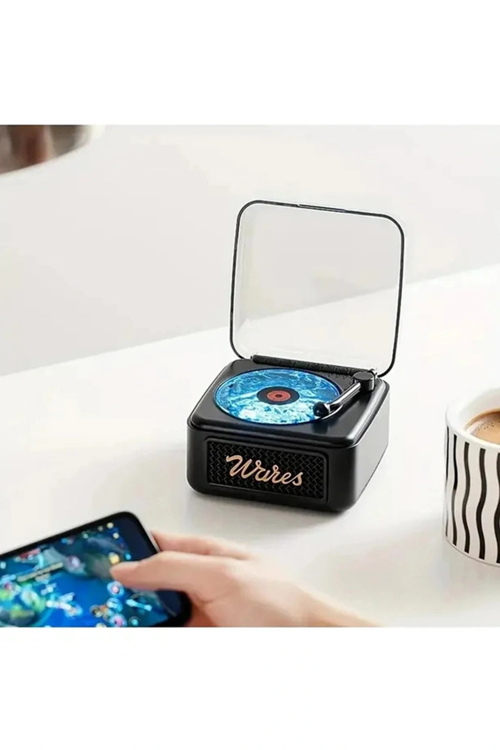 • Nostalji Mini Plak Görünümlü Radyolu Bluetooth Hoparlör 3d Ses Dalgası Retro Müzik Plak Siyah