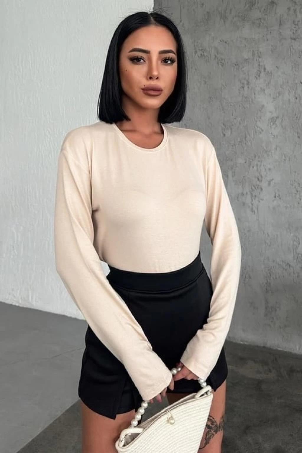 -Şimdi, gardırobunuzun olmazsa olmaz parçalarından biri olacak bu uzun kollu bisiklet yaka likralı bej viskon penye body'yi hemen satın alın ve her zaman rahat ve şık bir görünüme sahip olun