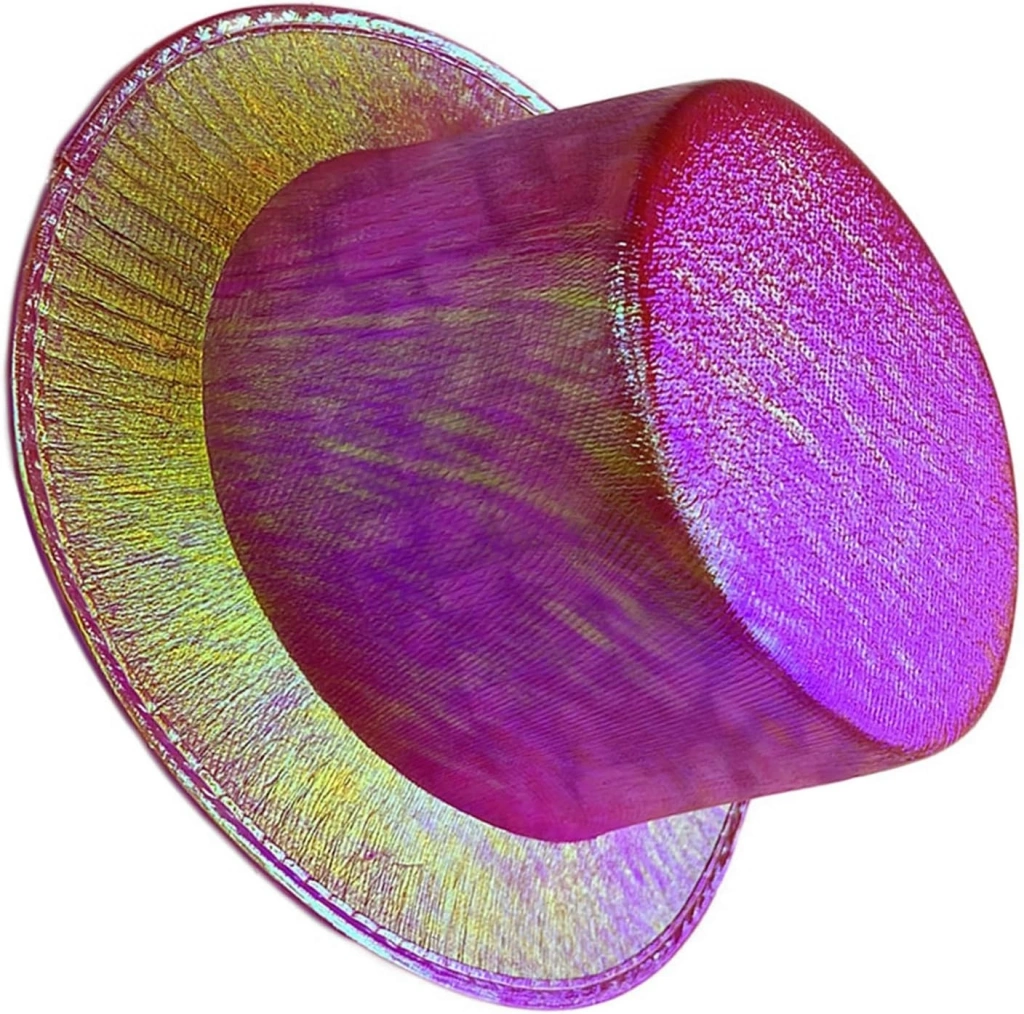 Fuşya Renk Işıltılı Hologram Kumaş Kaplama Fötr Silindir Şapka Yetişkin Boy, partiler, festivaller ve diğer özel günler için mükemmel bir aksesuardır. 58 cm baş çevresi için uygundur ve ışıl ışıl parıldayan yeşil hologram kumaşla kaplıdır.