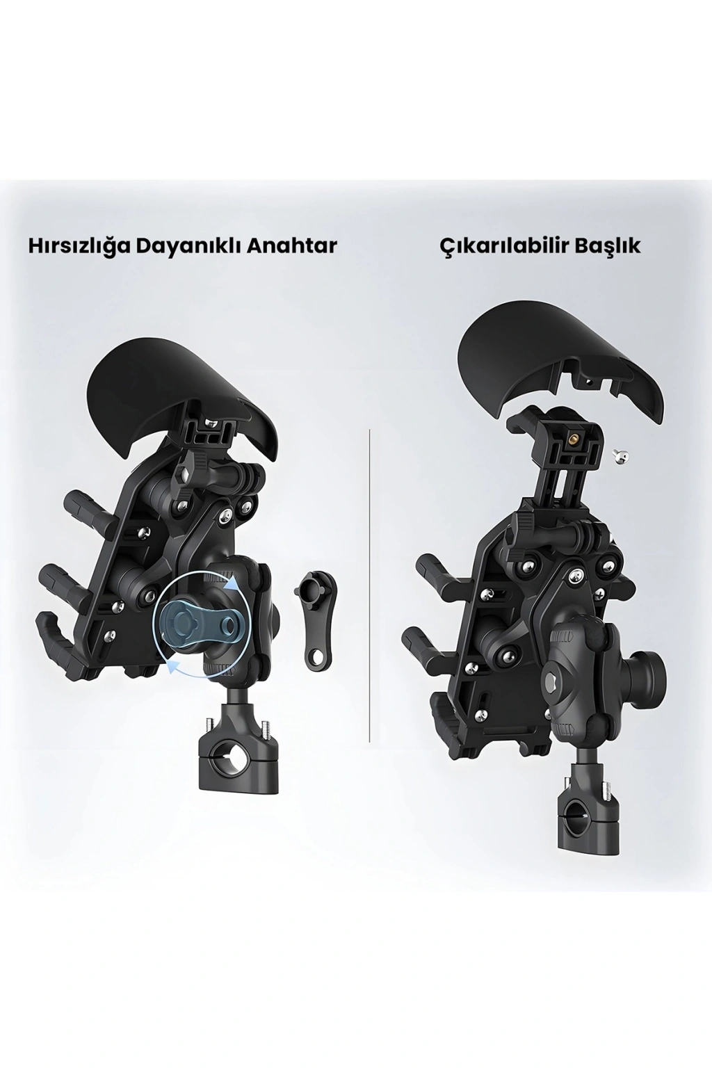 • Gidon Bağlantılı Güneş Ve Yağmur Korumalı 360° Derece Ayarlanabilir Motosiklet Bisiklet Telefon Tutucu