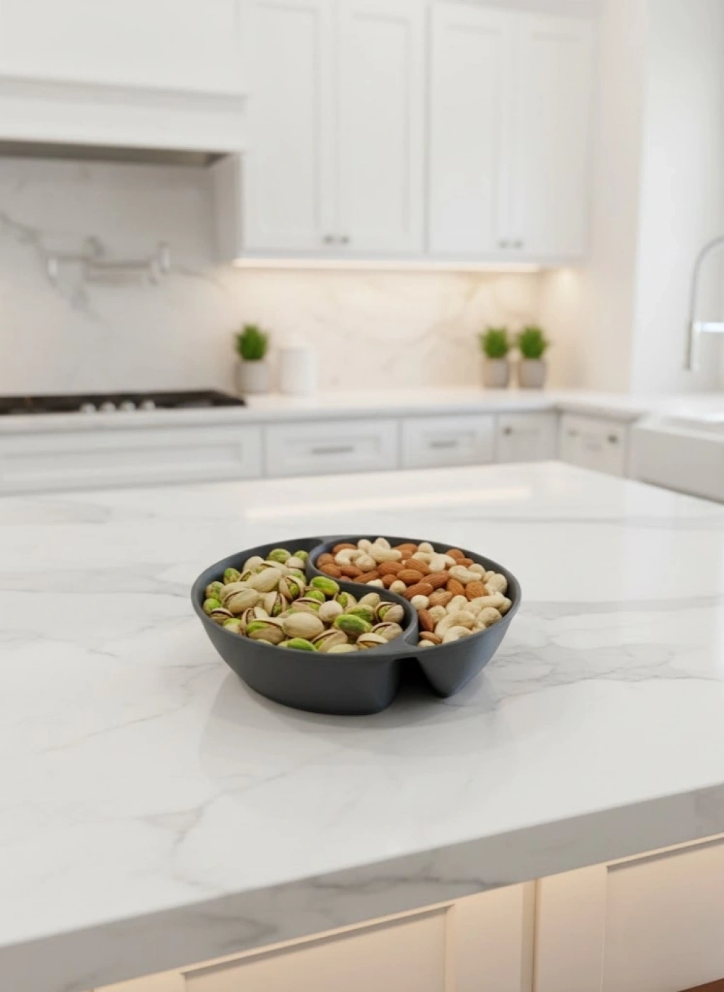 Modern ve sade tasarımıyla öne çıkan gri çerezlik kase seti, hem günlük kullanım hem de misafir sunumları için ideal bir çözüm sunar. Set içerisinde yer alan 4 adet kase, bölmeli yapısı sayesinde farklı çerezleri, kuruyemişleri veya atıştırmalıkları birbirine karıştırmadan servis etmenizi sağlar. Minimal formu ve nötr gri rengi ile salon, oturma odası ve mutfak dekorasyonuna kolayca uyum sağlar.Loş ya da aydınlık ortamlarda es bir görünüm sunan bu çerezlikler, sehpa üzerinde, masa üstünde veya raflarda şık bir tamamlayıcı olarak kullanılabilir. Dayanıklı yapısı sayesinde uzun süreli kullanıma uygundur ve günlük temizlikte pratiklik sağlar. Film geceleri, davetler, kahve sunumları ve özel günlerde düzenli ve zarif bir sunum arayanlar için ideal bir tercihtir.
