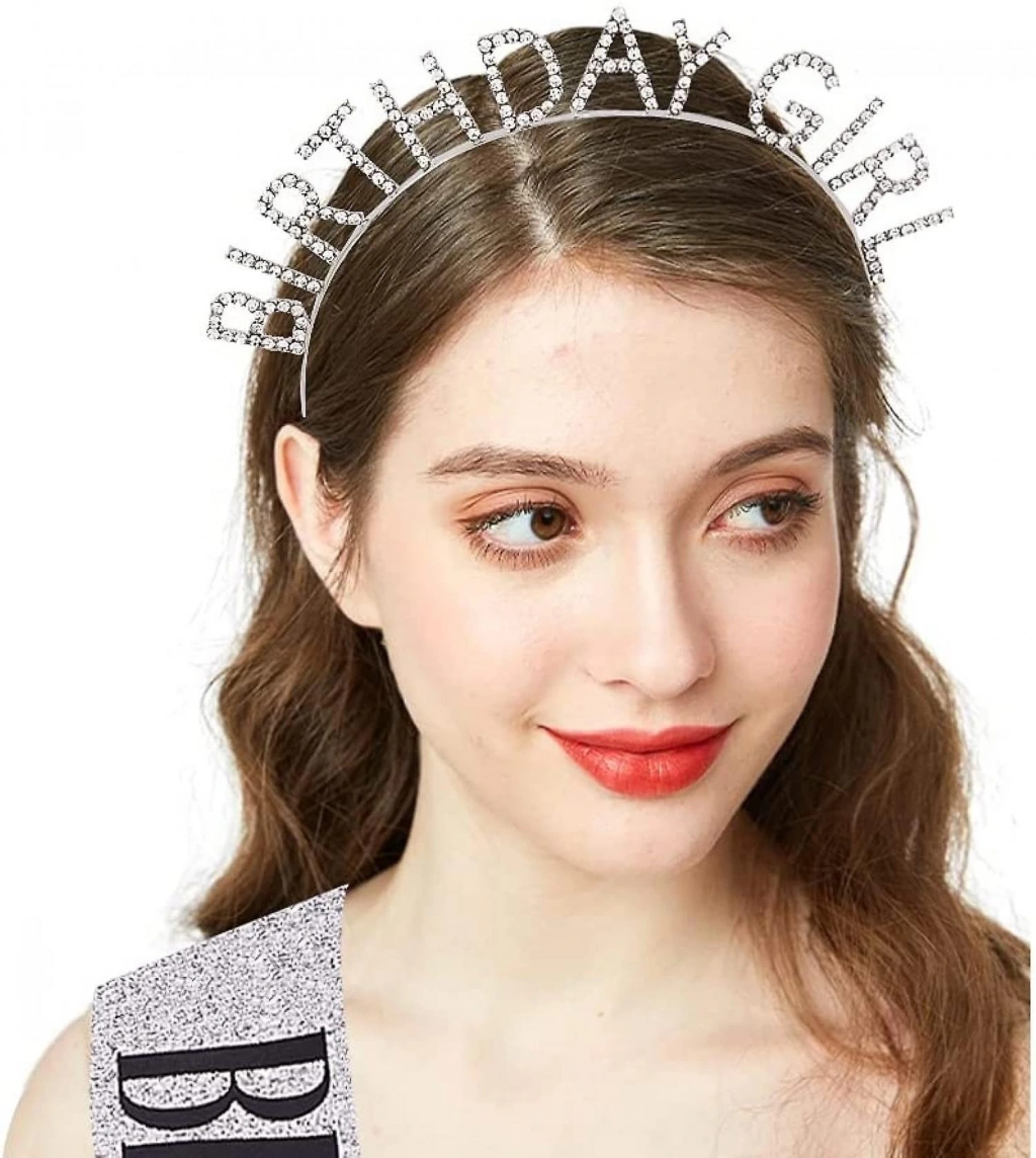 Doğum gününüzde prenses gibi parıldamak ve unutulmaz bir anı yaratmak ister misiniz? Gümüş Renk Kristal Taşlı Parlak Birthday Girl Yazılı Taç tam size göre