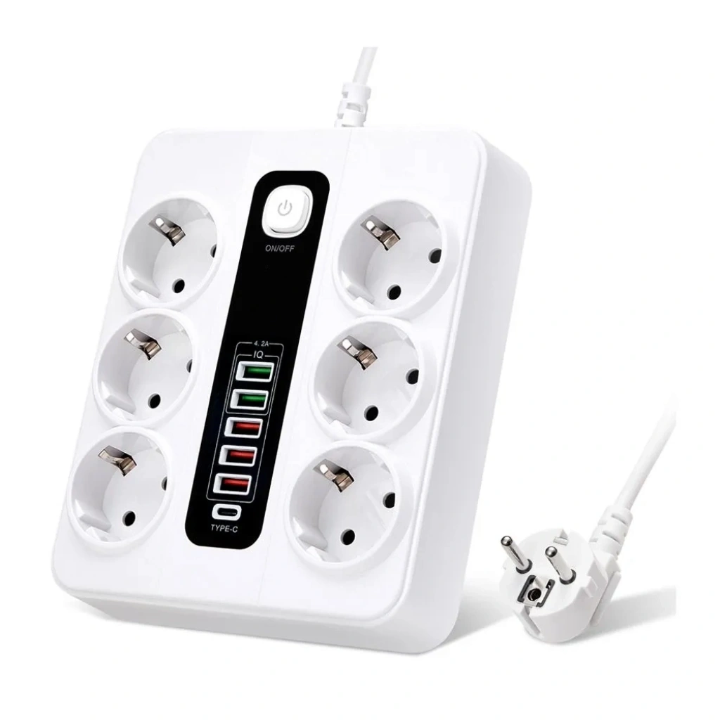Birden fazla cihazı ve cihazı aynı anda şarj edebilen 4 EU AC Jack, 4 USB-A,2 Type C bağlantı noktasına sahiptir.