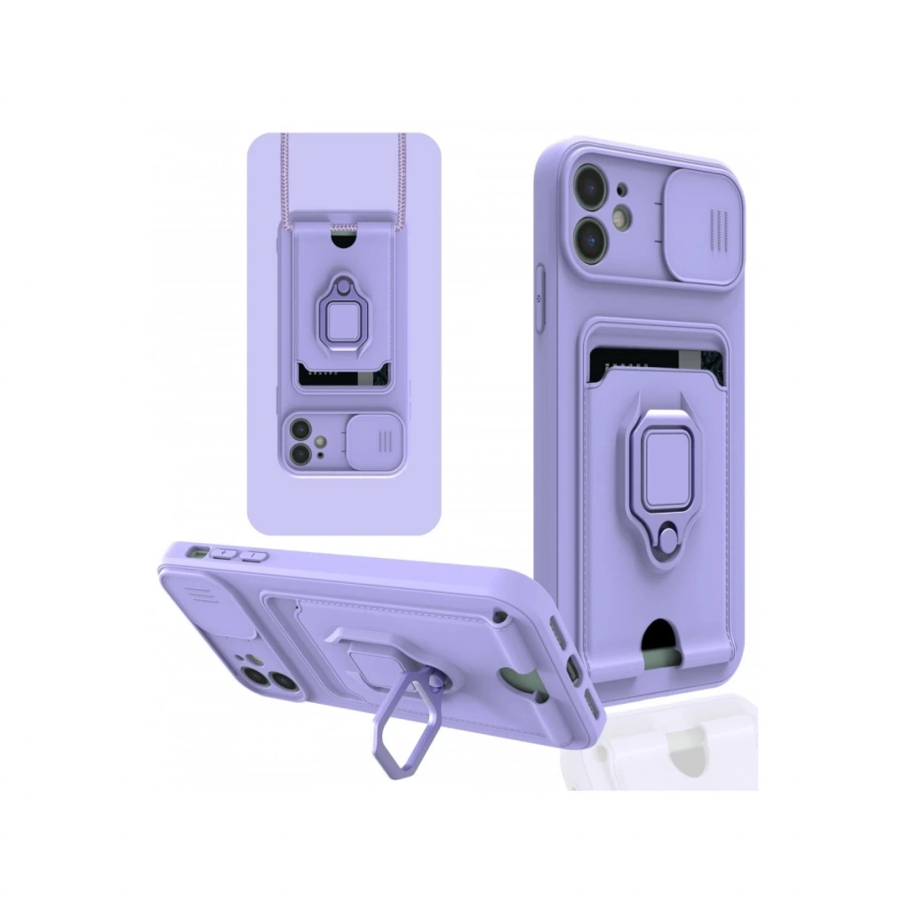 • İphone 11 Kılıf Zuma Kartvizitli Yüzüklü Silikon - Lila