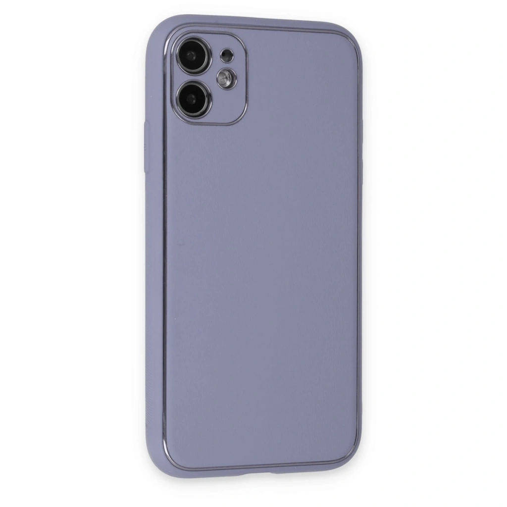 İphone 12 Kılıf Coco Deri Silikon Kapak - Açık Lila