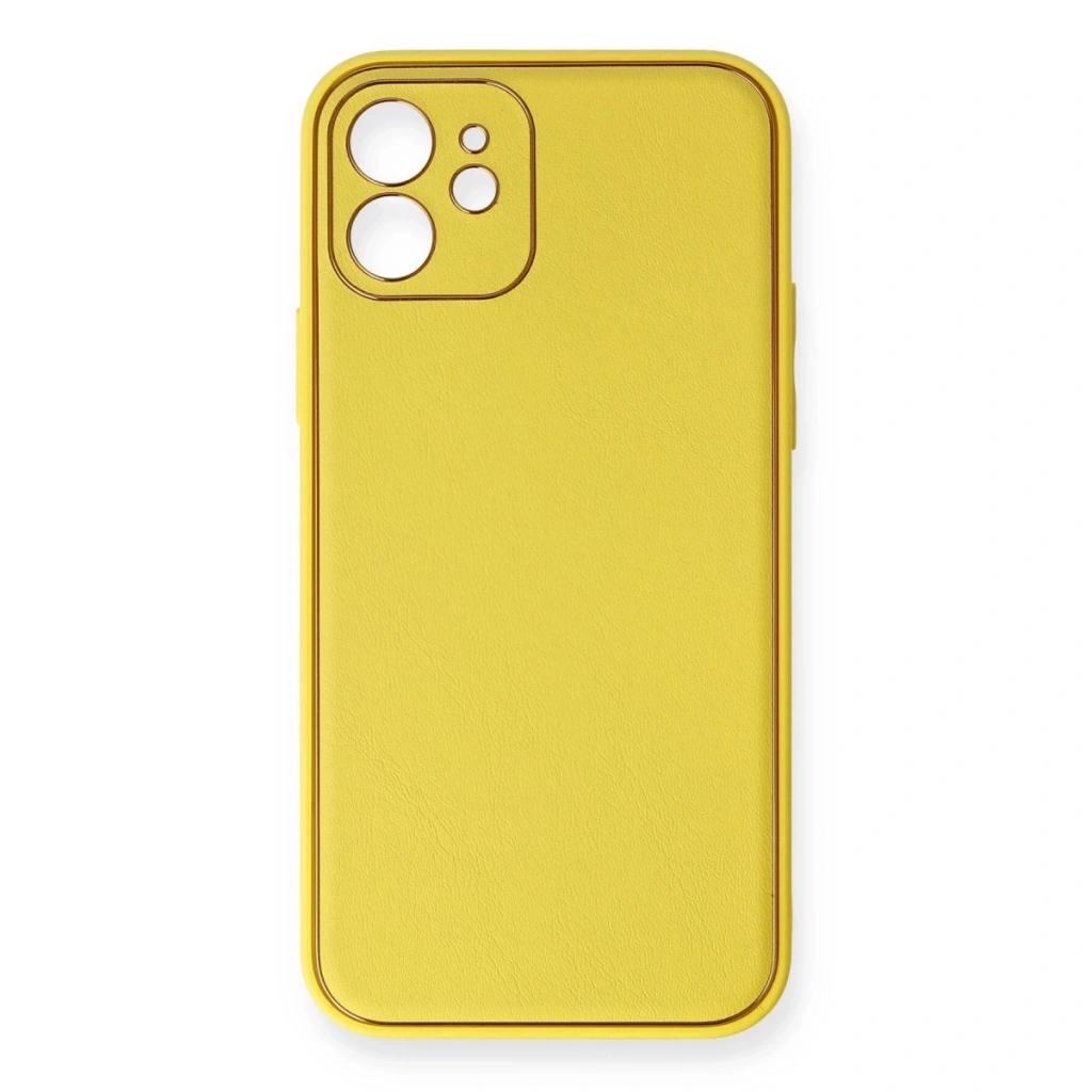 • İphone 12 Kılıf Coco Deri Silikon Kapak - Sarı