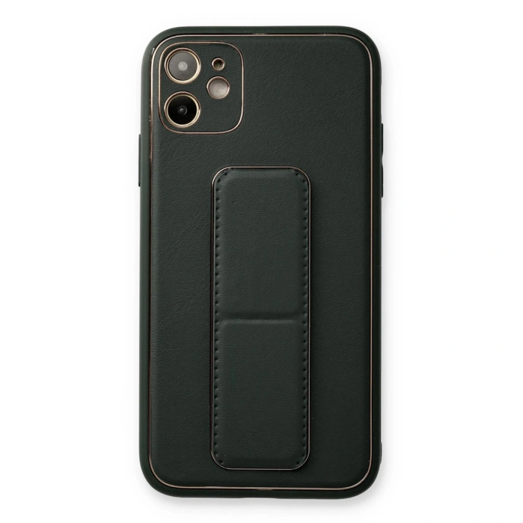 • İphone 12 Kılıf Coco Deri Standlı Kapak - Füme