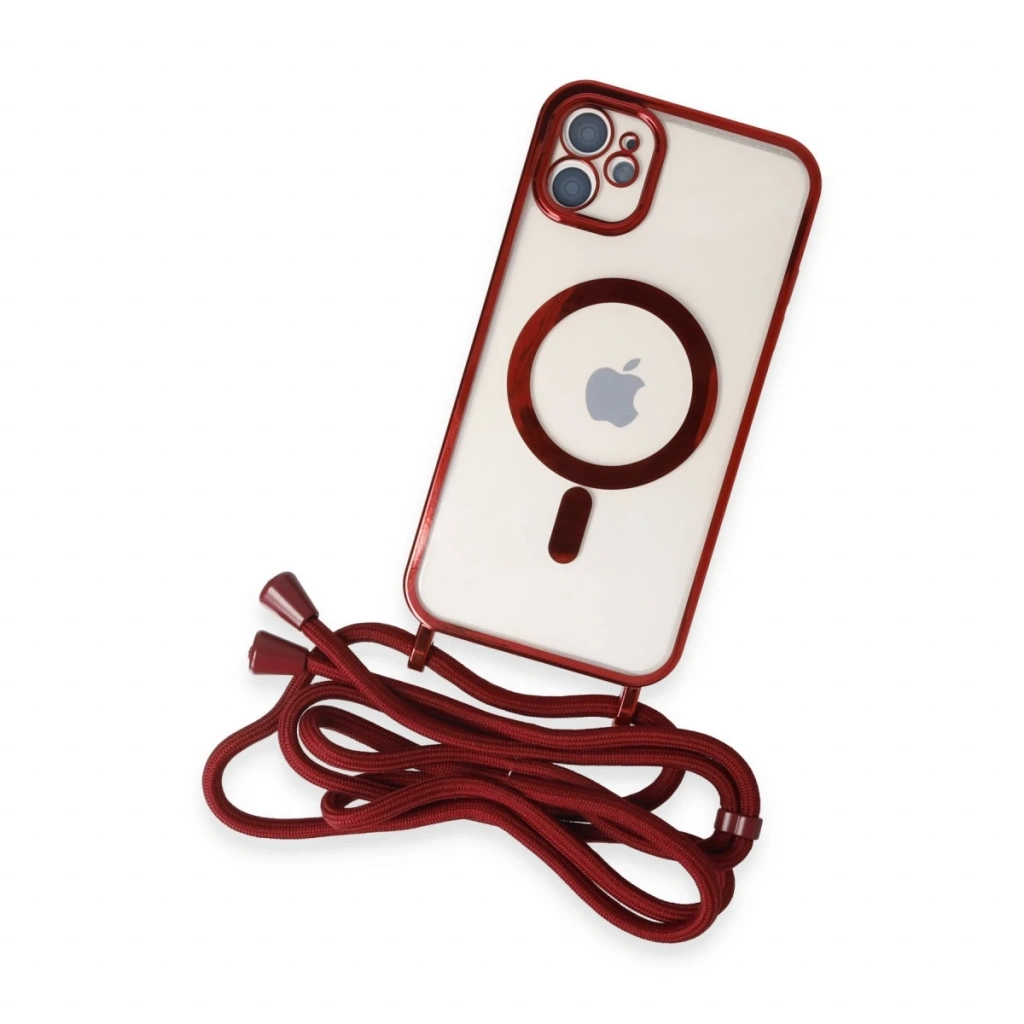 • İphone 12 Kılıf Divo Lazer Askılı Magsafe Kapak - Kırmızı