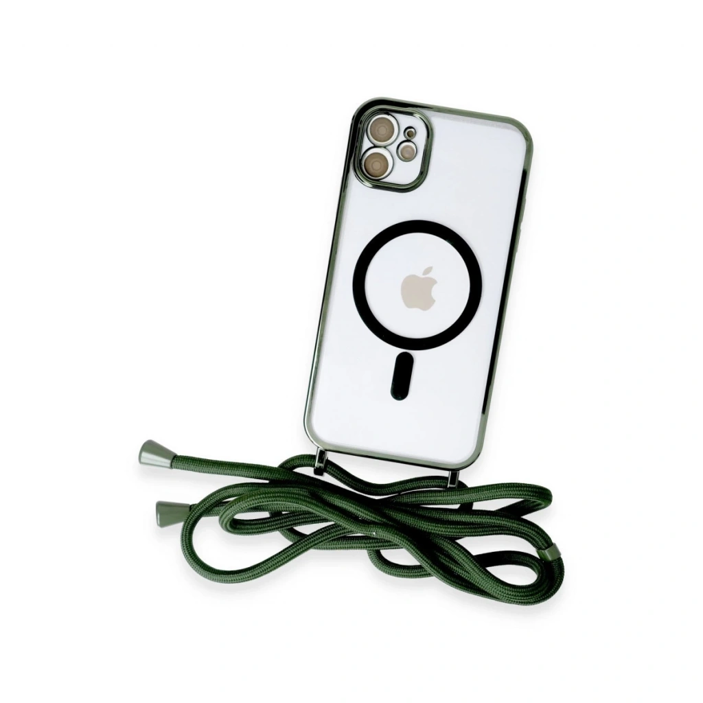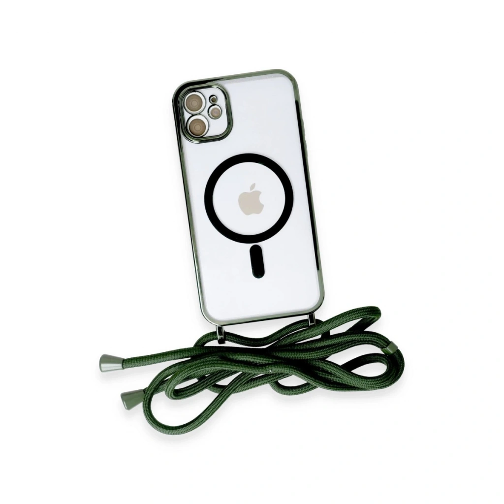 • İphone 12 Kılıf Divo Lazer Askılı Magsafe Kapak - Koyu Yeşil