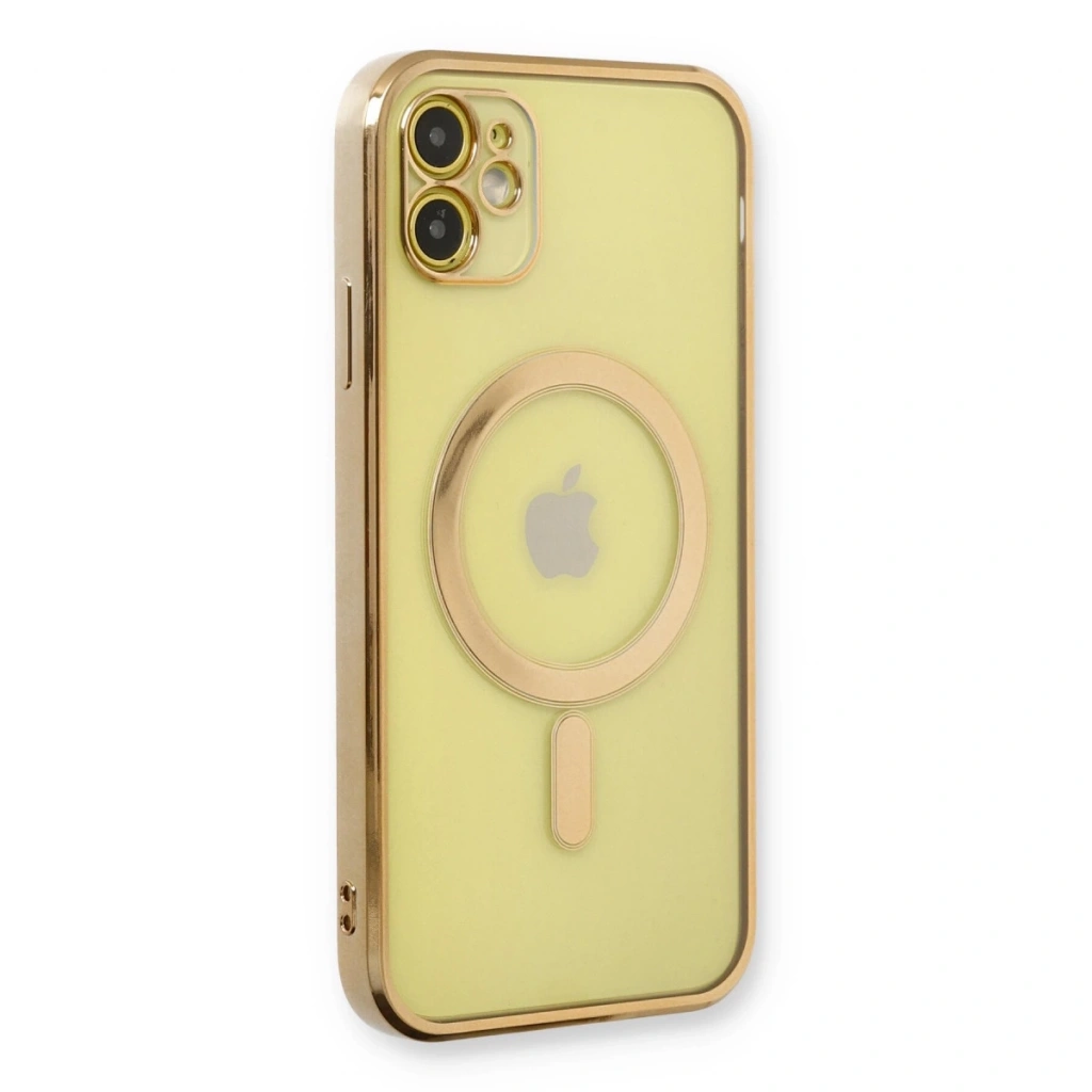 • İphone 12 Kılıf Magneticsafe Lazer Silikon - Gold