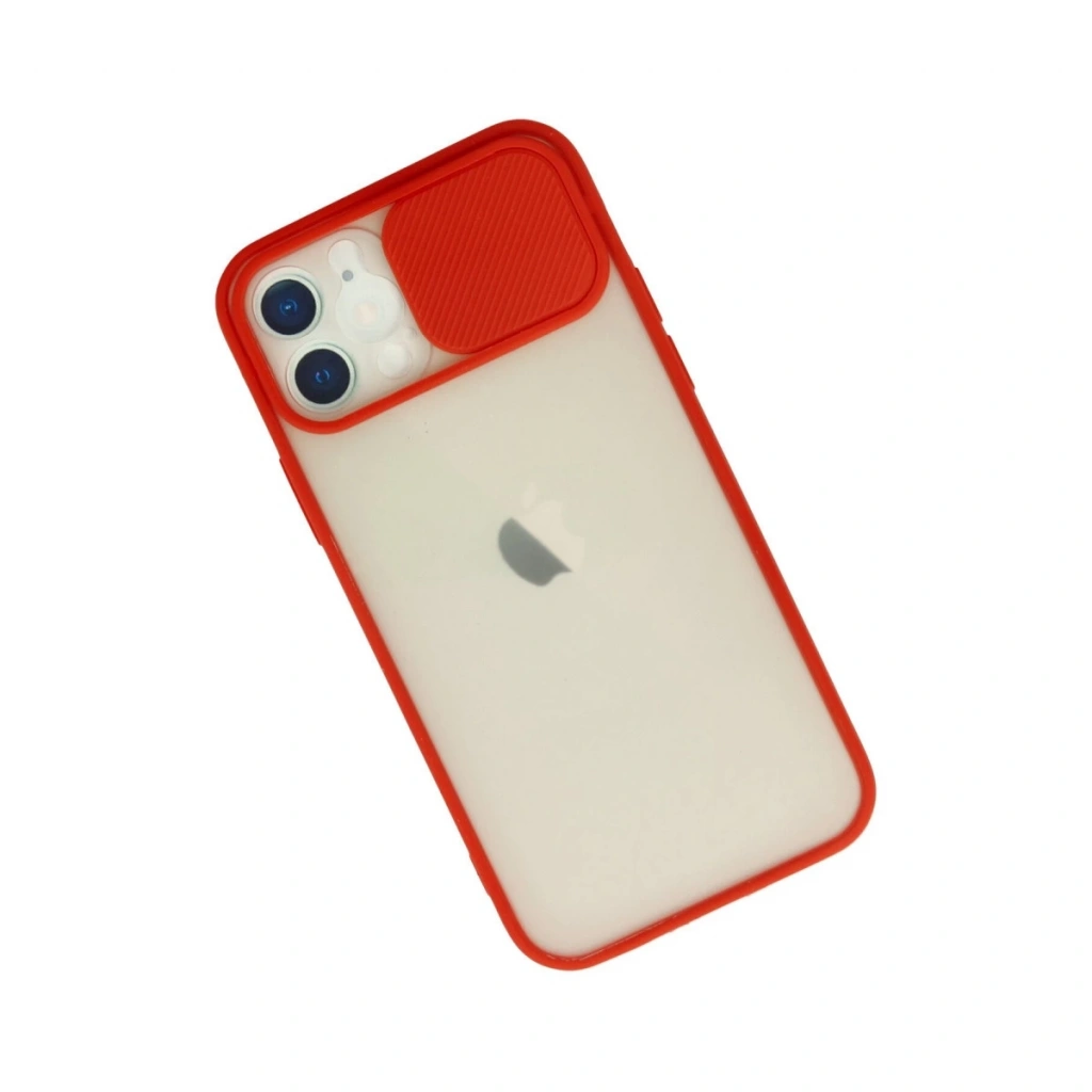 İphone 12 Kılıf Palm Buzlu Kamera Sürgülü Silikon - Kırmızı