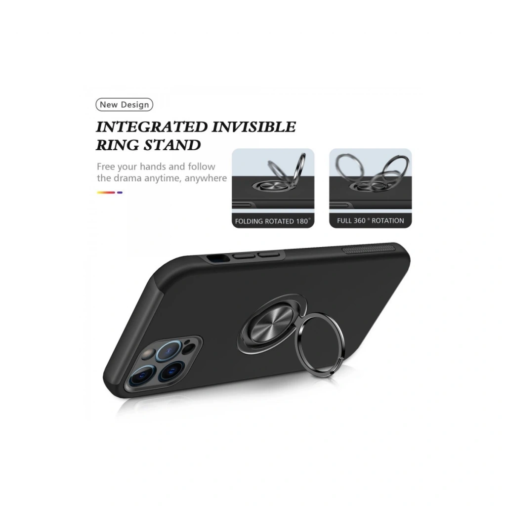 • İphone 12 Pro Kılıf Elit Yüzüklü Kapak - Siyah