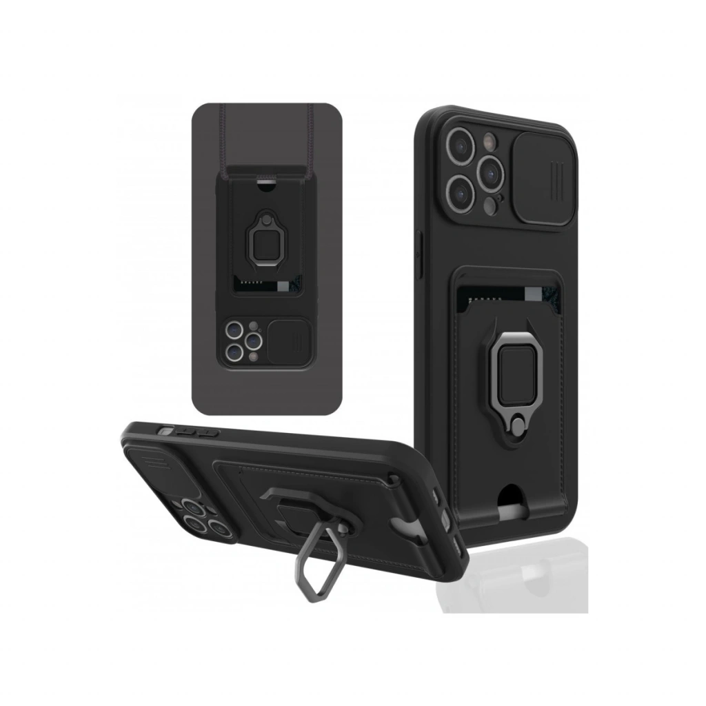 İphone 12 Pro Kılıf Zuma Kartvizitli Yüzüklü Silikon - Siyah