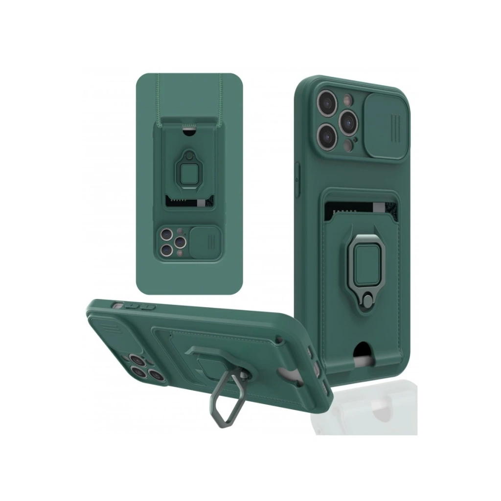 • İphone 12 Pro Kılıf Zuma Kartvizitli Yüzüklü Silikon - Yeşil