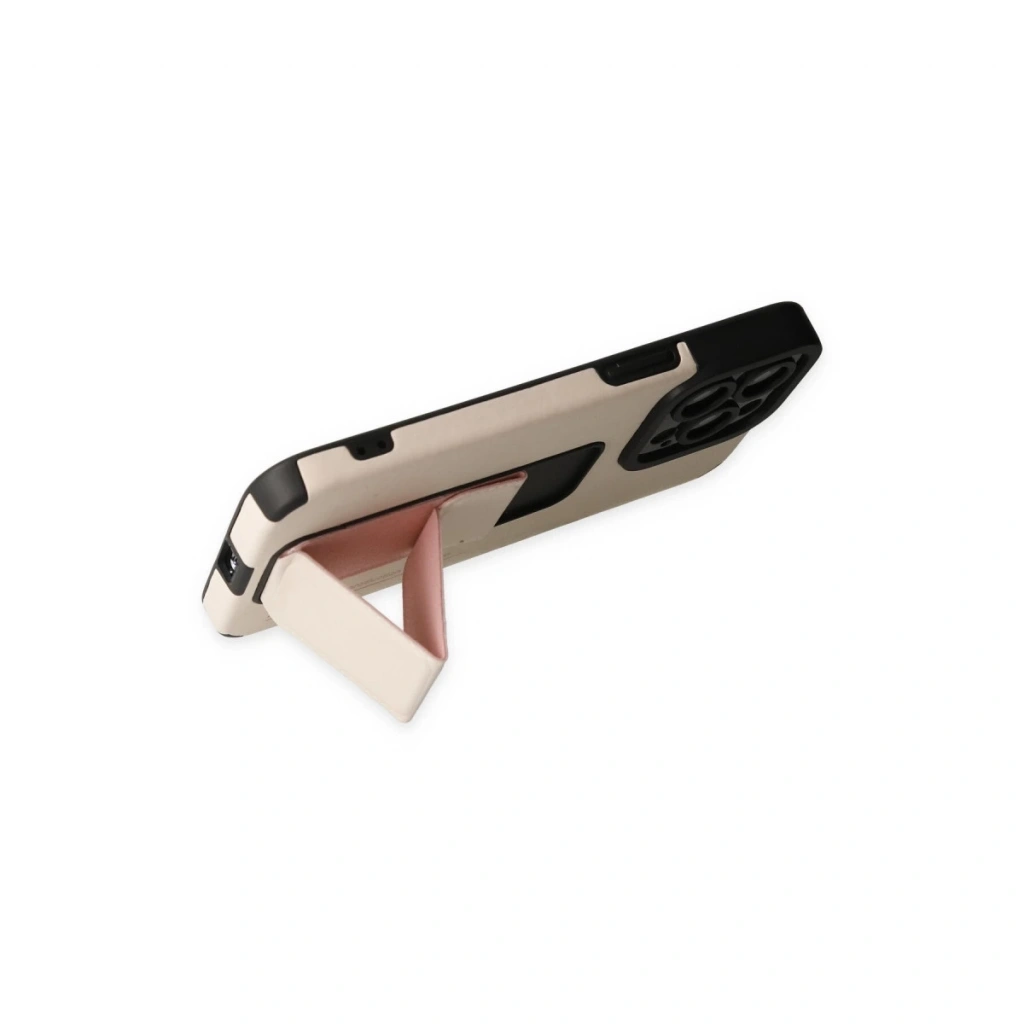 • İphone 13 Pro Max Kılıf Mega Standlı Silikon - Gold