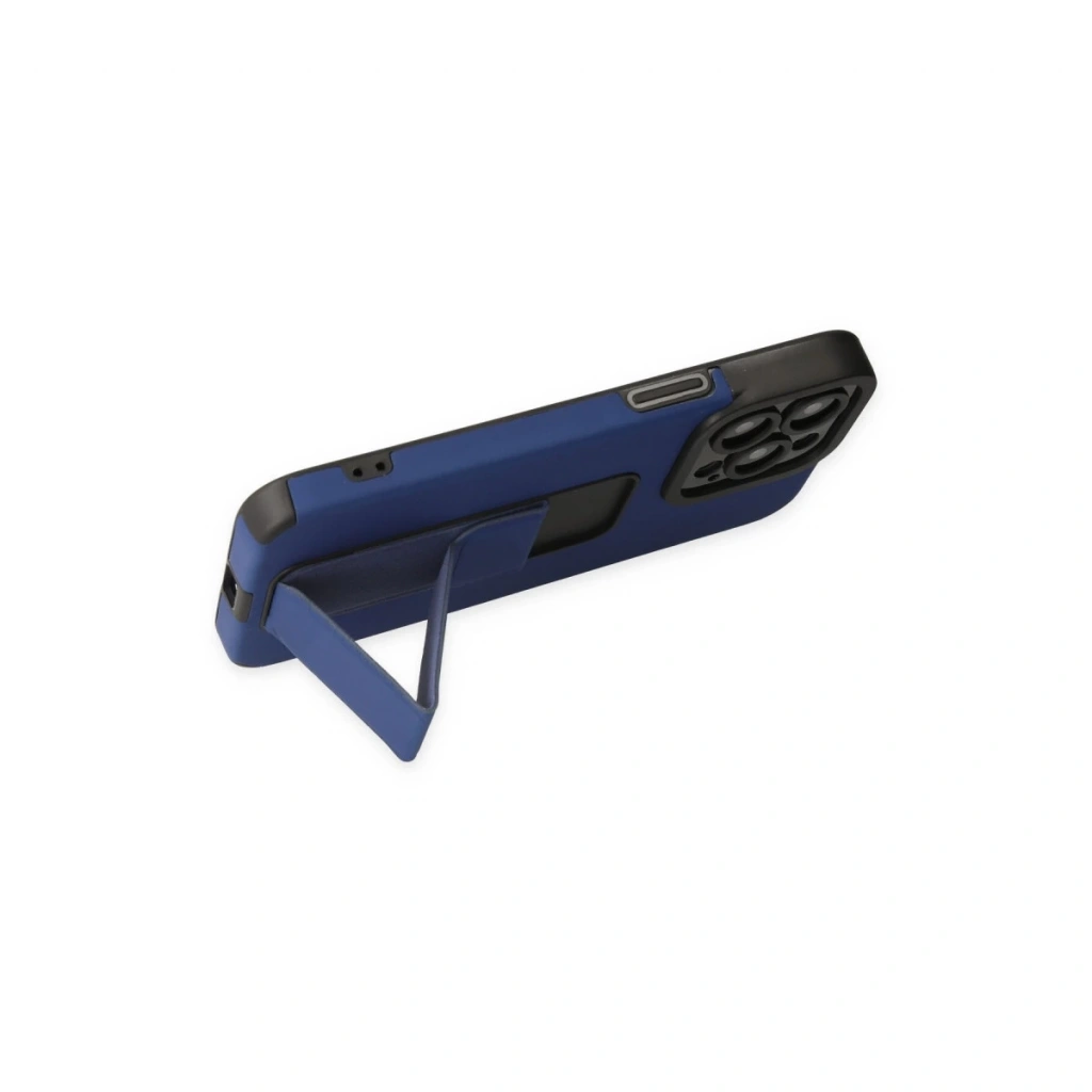 • İphone 13 Pro Max Kılıf Mega Standlı Silikon - Mavi